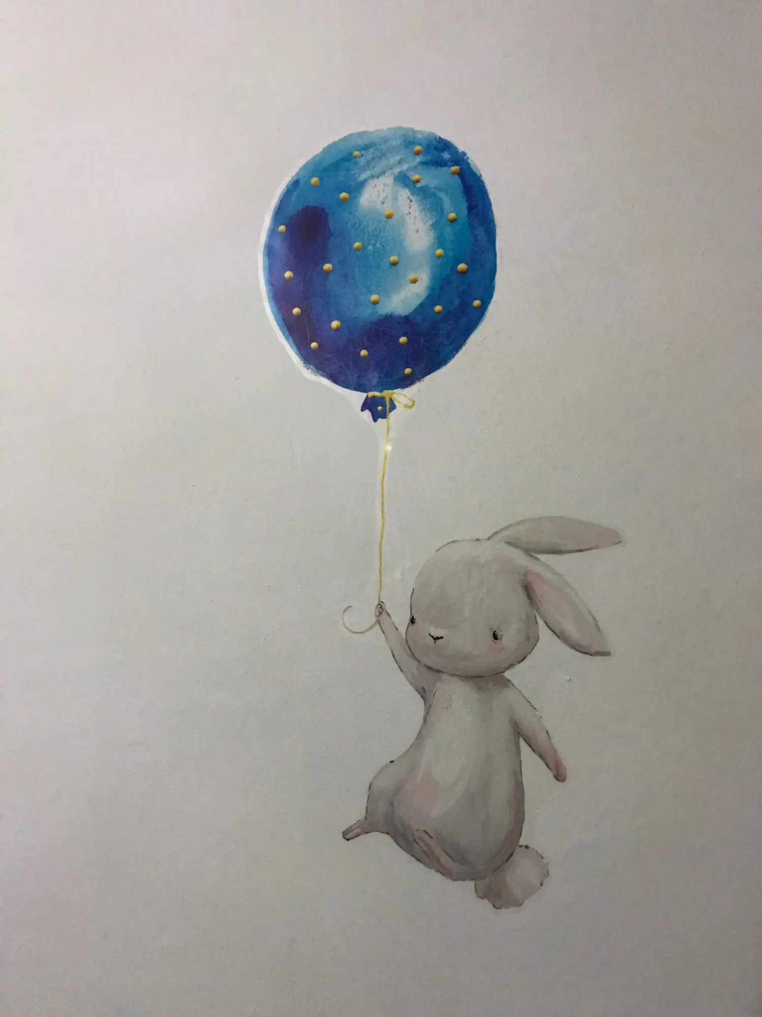 Акварель воздушный шар Зайчик и коричневая Фотография для детской комнаты фотообои вечерние ПВХ акварель