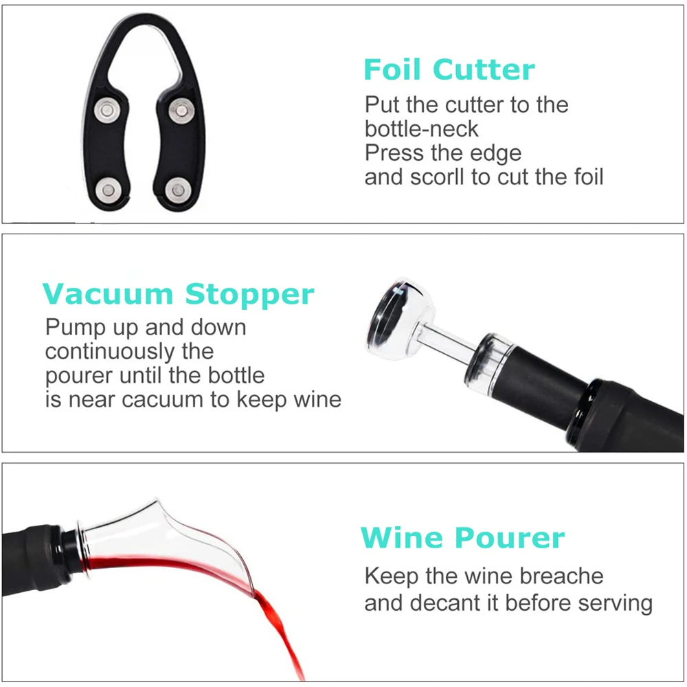 Бутылка с воздушным давлением набор для открывания, портативный ручной штопор, вакуумная пробка для вина, набор для нарезки фольги, кухонные приспособления для домашнего использования