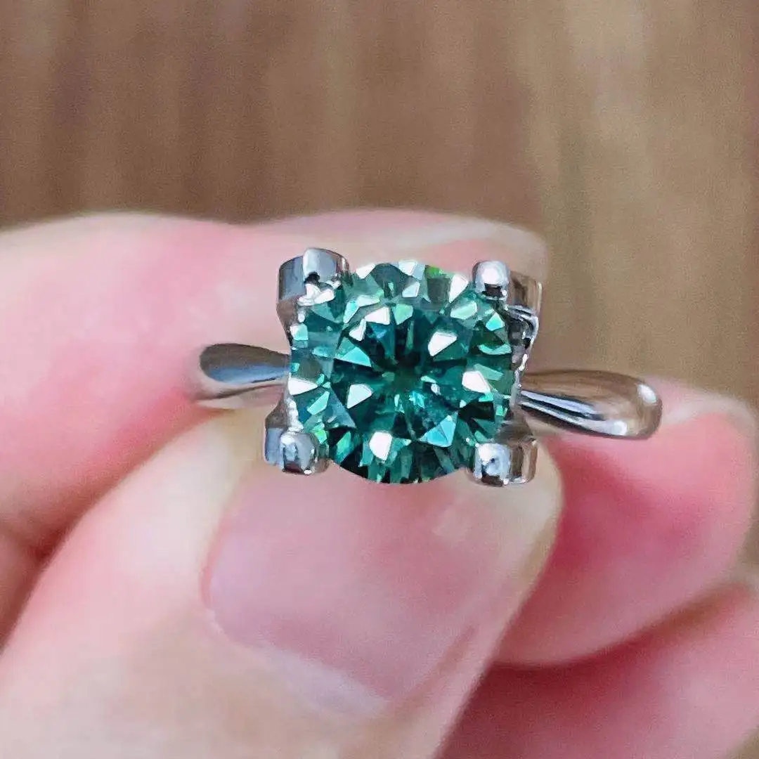 Кольцо с муассанитом 2 карата 8 мм, синие и зеленые кольца с бриллиантами, регулируемый размер, серебро 925 пробы, для женщин, для вечеринок, подарок для девушек