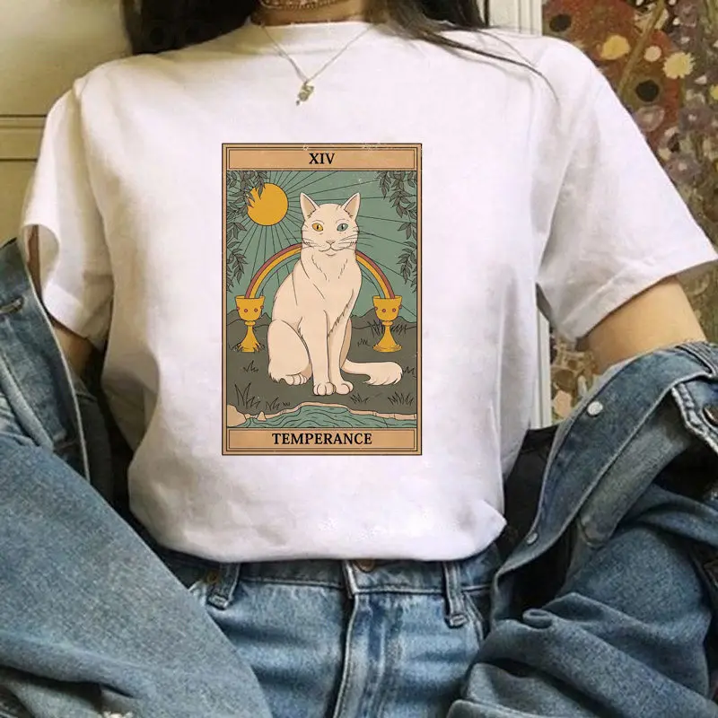 Топы с принтом Таро-кота, летняя женская футболка, женская одежда с коротким рукавом, женские топы в стиле ольччан Харадзюку