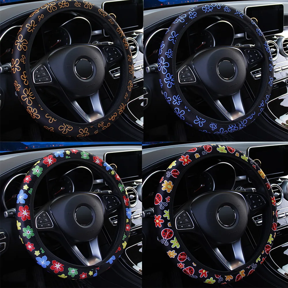 Чехол рулевого колеса автомобиля интерьер эластичный цветочный принт автостайлинг универсальные аксессуары для интерьера Противоскользящий чехол оплетка 33 см