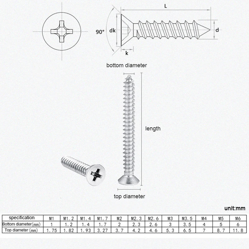 Винт Саморезы Из Нержавеющей Стали, 50 шт., M1, M1.2, M1.4, M1.7, M2, M2.6, M3, M3.5, M4 Mini 304, крестообразный, с плоской потайной головкой