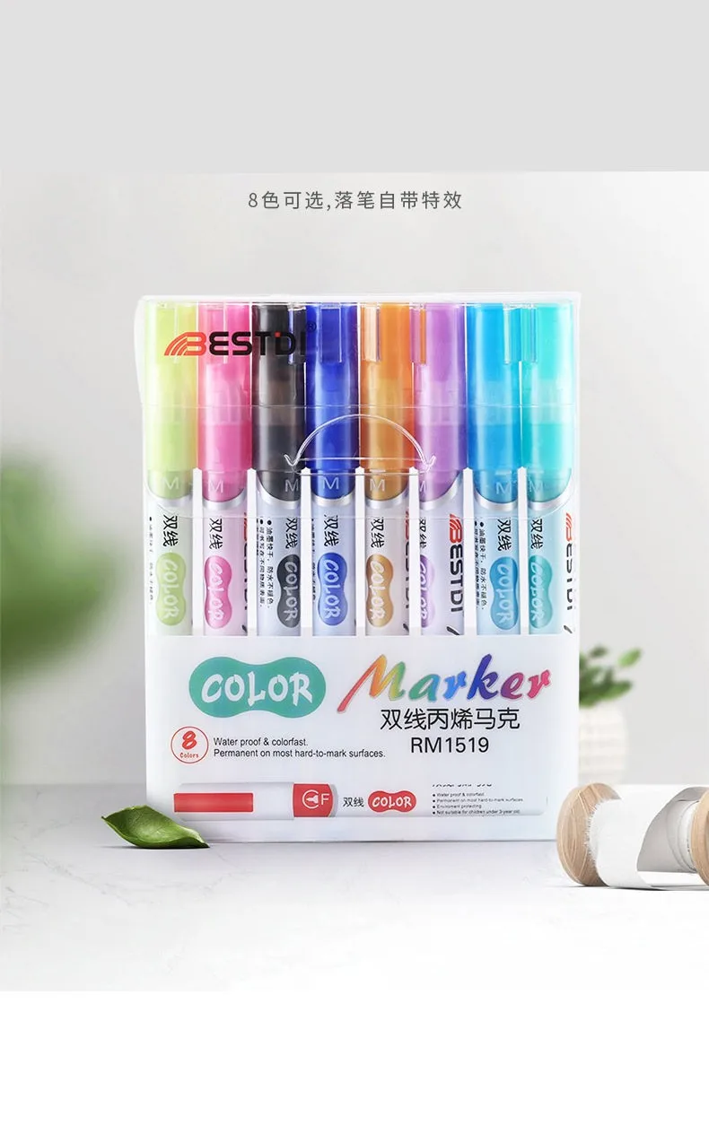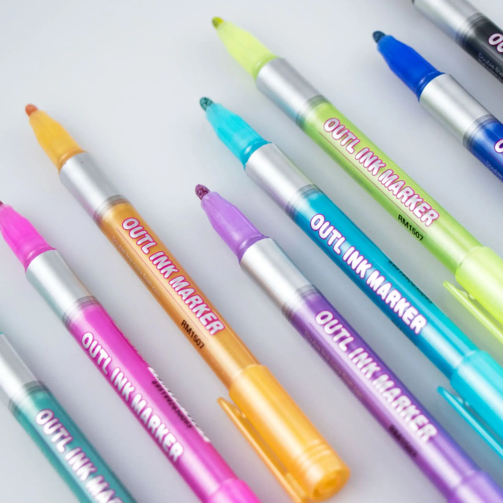 ЦветныеНабор металлические художественные маркеры с двойными линиями акриловая ручка канцелярские принадлежности художественные ручки для рисования Скрапбукинг от Kevin sasa Crafts