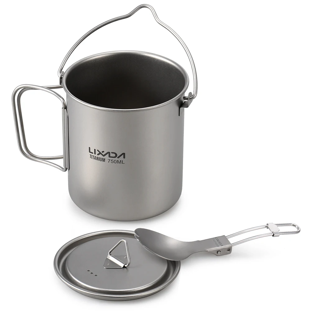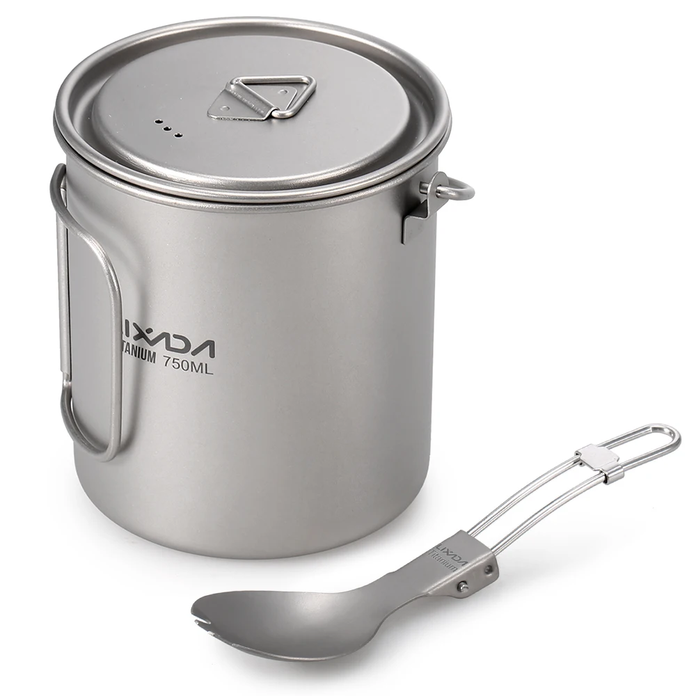 Легкий Титановый горшок Lixada 7509001100 мл с складная ложка-вилка для отдыха на природе, кемпинга, пешего туризма, пикника