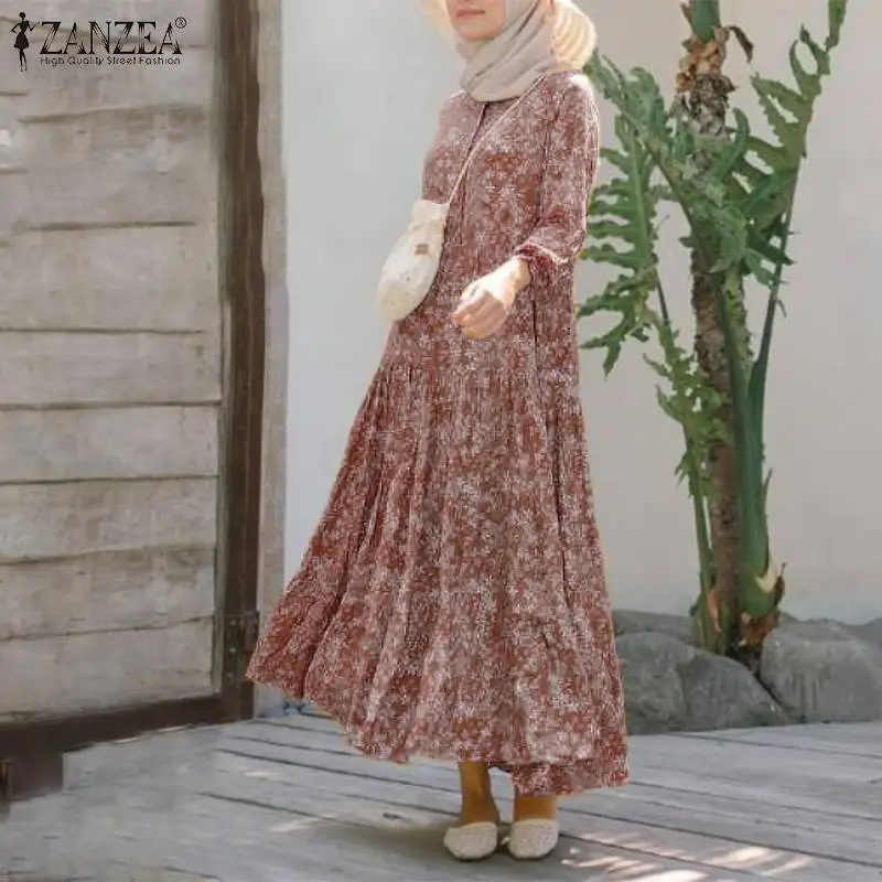Женское мусульманское платье с цветочным принтом, длинное повседневное свободное платье с оборками, модель 2021 года, Осень Модное из вискозы