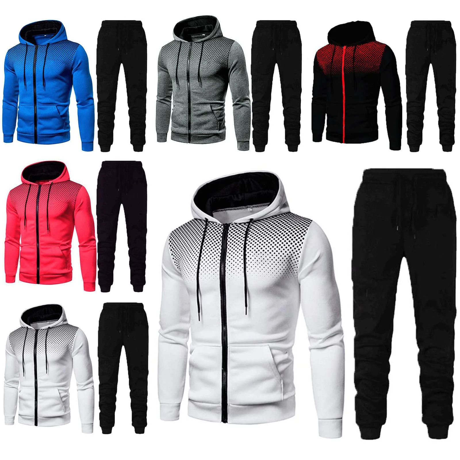 Мужской зимний спортивный повседневный костюм для фитнеса с толстовкой в горошек, Свитшот и брюки, спортивный костюм, мужская спортивная одежда, спортивные костюмы