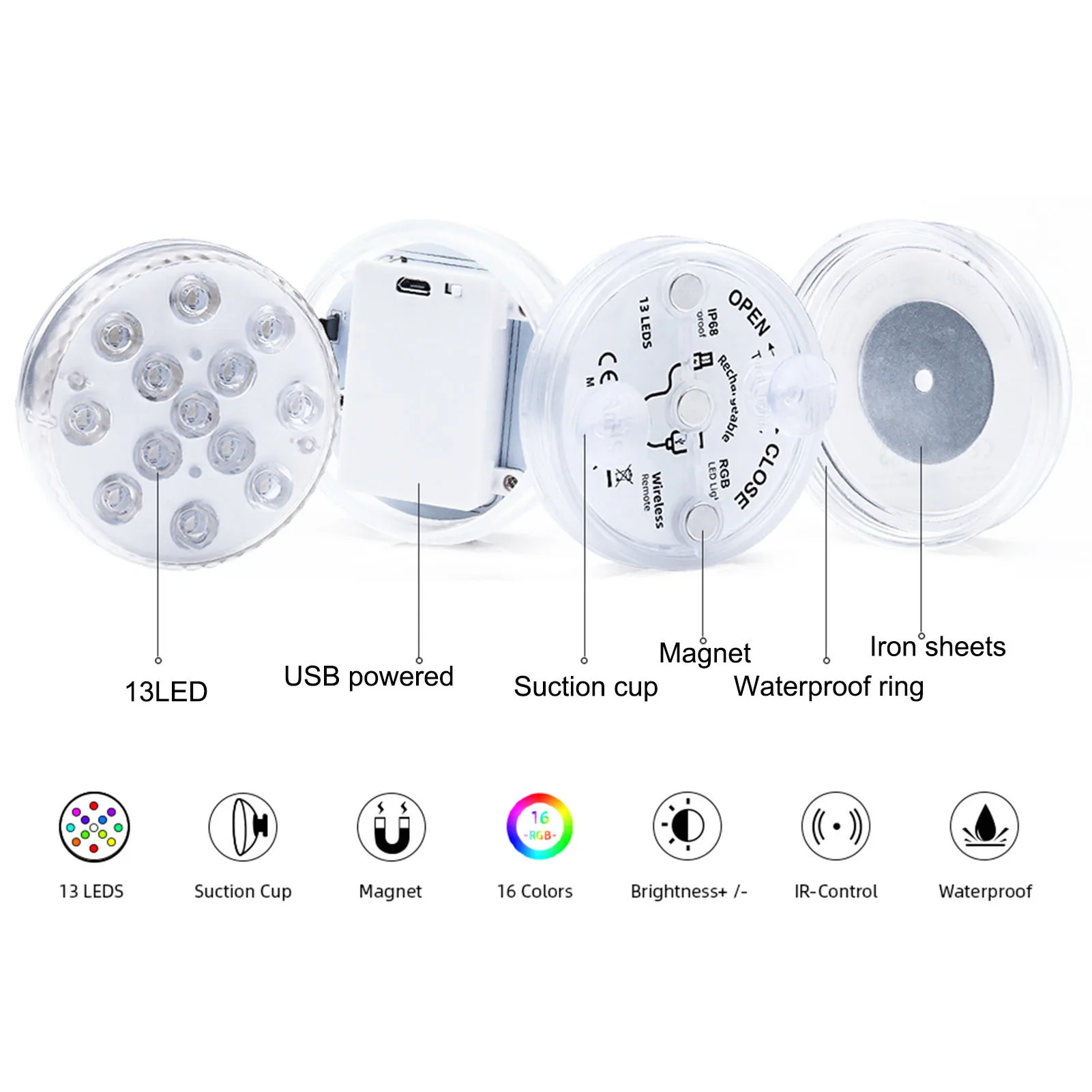 Подводный светильник с 13 светодиодный одами, зарядка от USB, Водонепроницаемая IP68 лампа для бассейнов, аквариумов, ВАЗ
