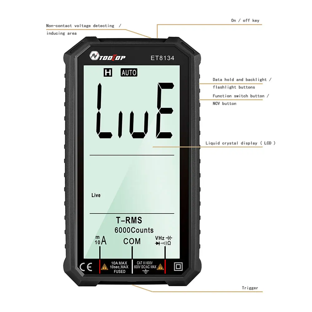 Цифровой мультиметр ET8134 NCV с ЖК-дисплеем и подсветкой, Автомати...