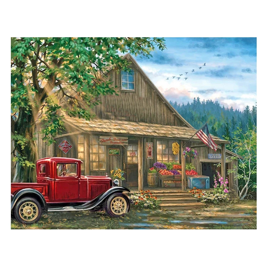 Алмазная 5D картина в стиле ретро с изображением автомобиля, вышивка крестиком, дома, пейзажа, картина ручной работы, квадратная вышивка