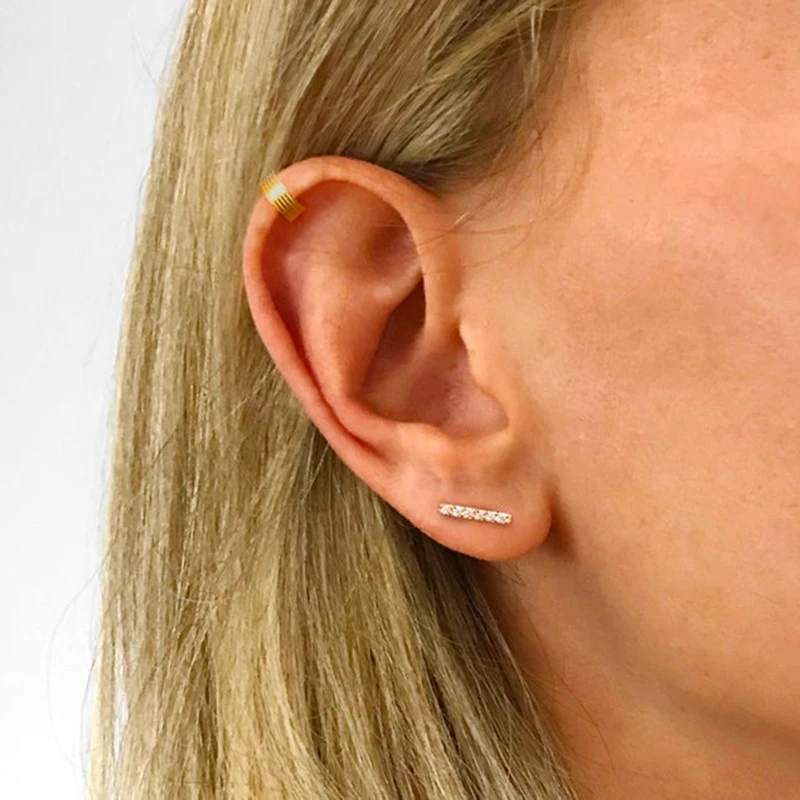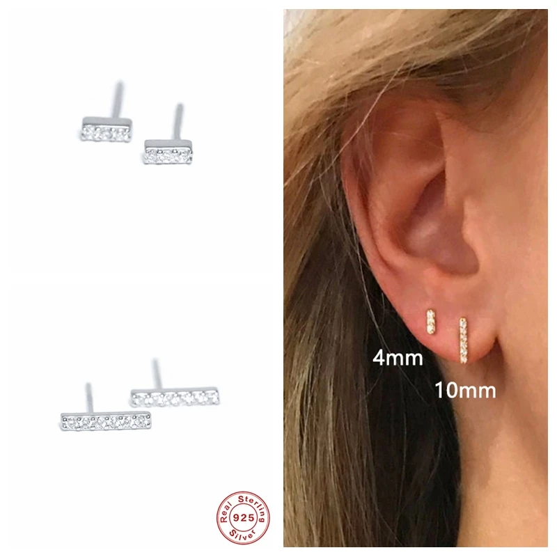GS 925 стерлингового серебра с укороченными рукавами бар, серьги со шпилькой, для женщин, геометрический минималистский, циркон, кристалл, серьги-гвоздики, хорошее ювелирное изделие, подарки