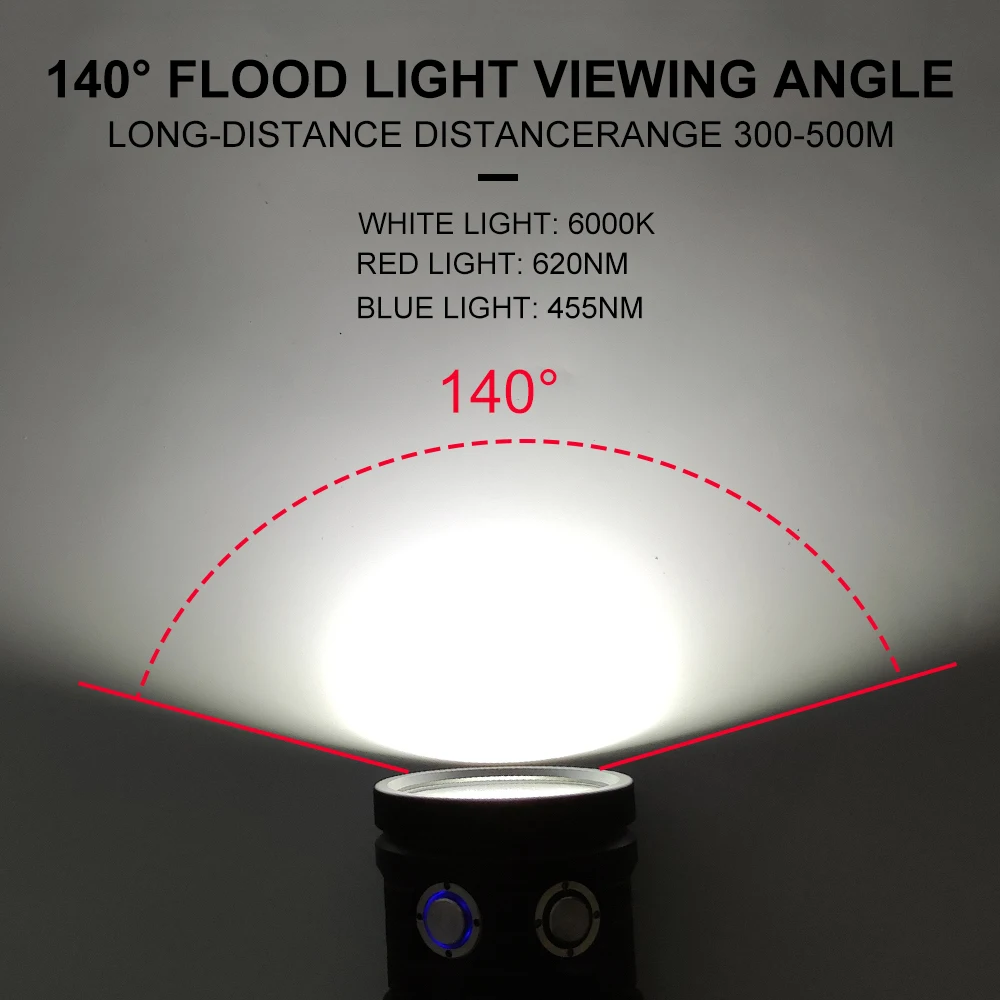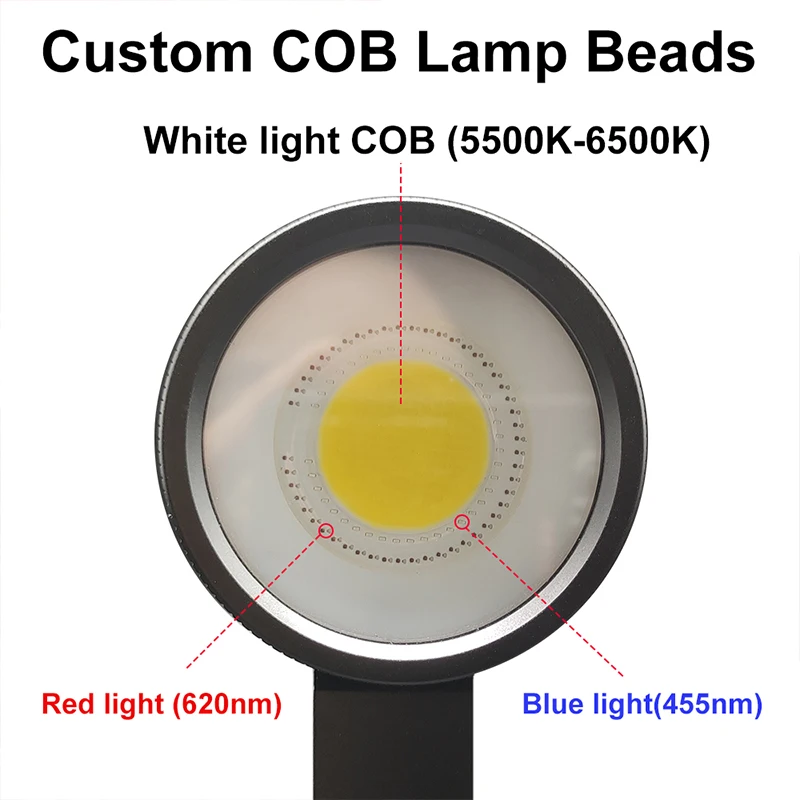 Кнопка 1: белый светильник (5500K-6500K)* Режим 1: 18000 люменов (может работать непрерывно в течение 90 минут/рекомендуется для подводного использования)* Режим 2: 9000 люмен (может работать непрерывно в течение 180 минут/рекомендуется для подводного использования)* Режим 3: 5000 люмен (может работать непрерывно в течение 240 минут/может использоваться на суше)* Использование земли: если вы используете его на суше, рекомендуется использовать самую низкую передачу.* Самая высокая передача будет генерировать много тепла, поэтому рекомендуется использовать его под водой.Кнопка 2:* Режим 1: Красный светильник длиной волны (620 нм)* Режим 2: красная вспышка* Режим 3: синий светильник длиной волны (455 нм)* Режим 4: дважды щелкните переключатель, мигающий красный и синийУправление затемнением: (для тонкой настройки процесса фотосъемки)* Белый светильник + красный светильник (4500k-5000k)* Белый светильник + синий светильник (6000k-7000k)