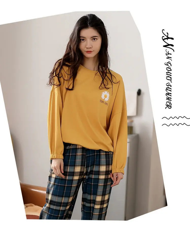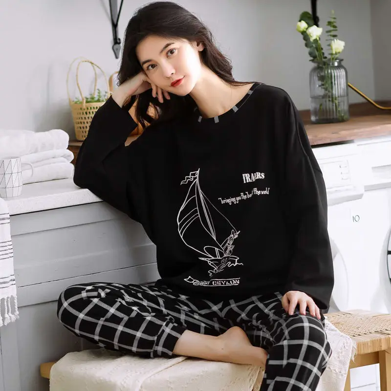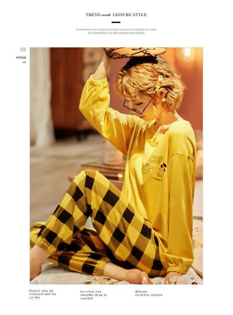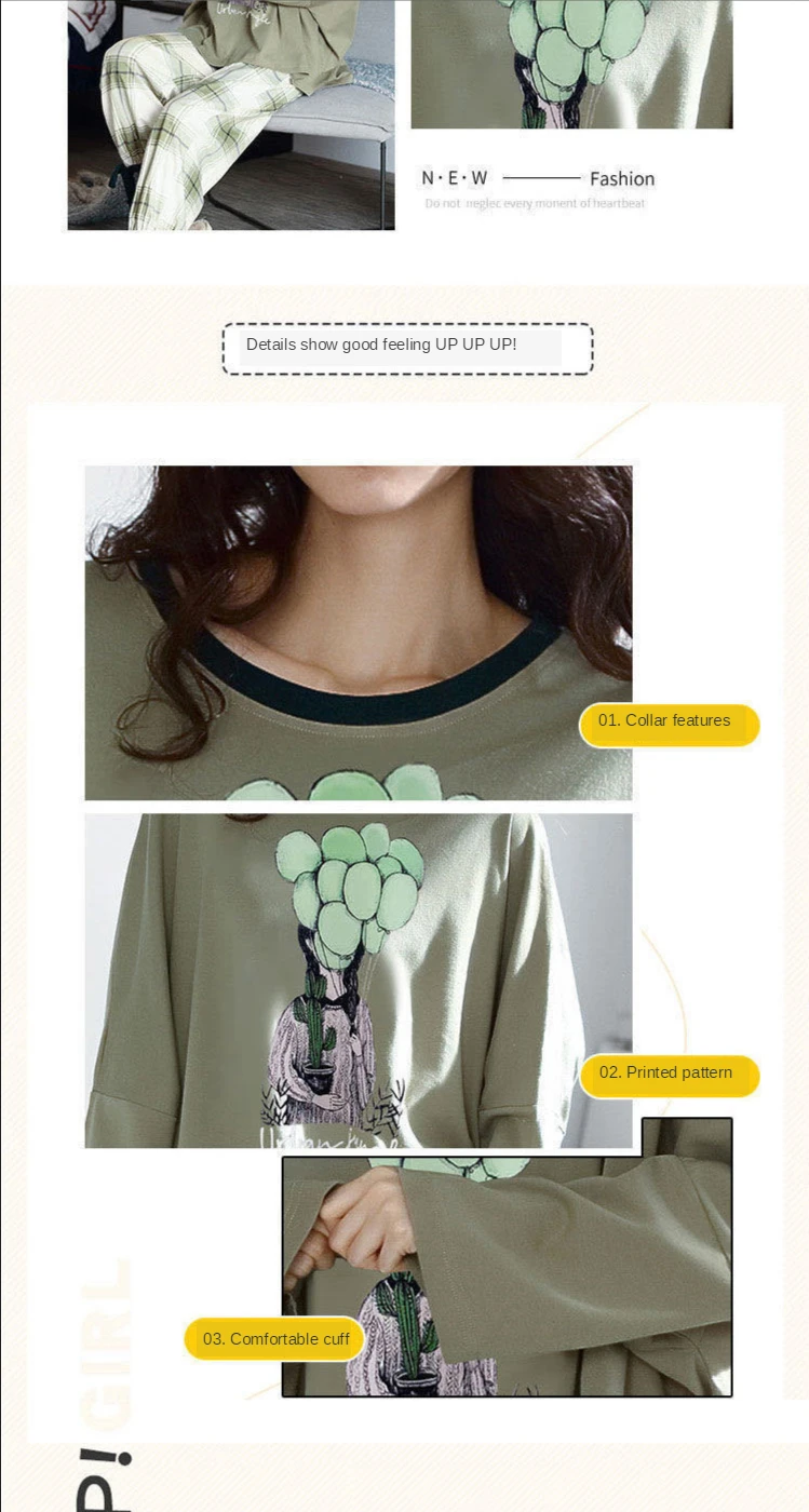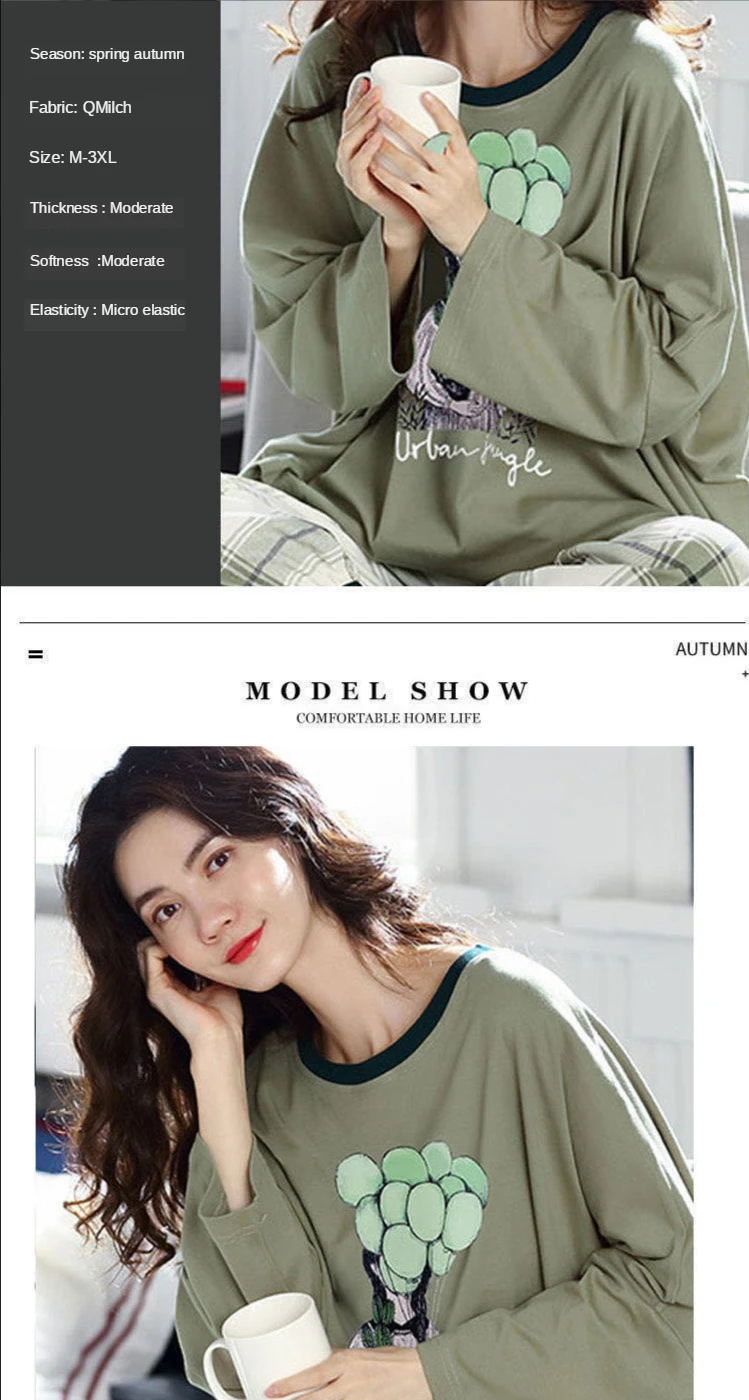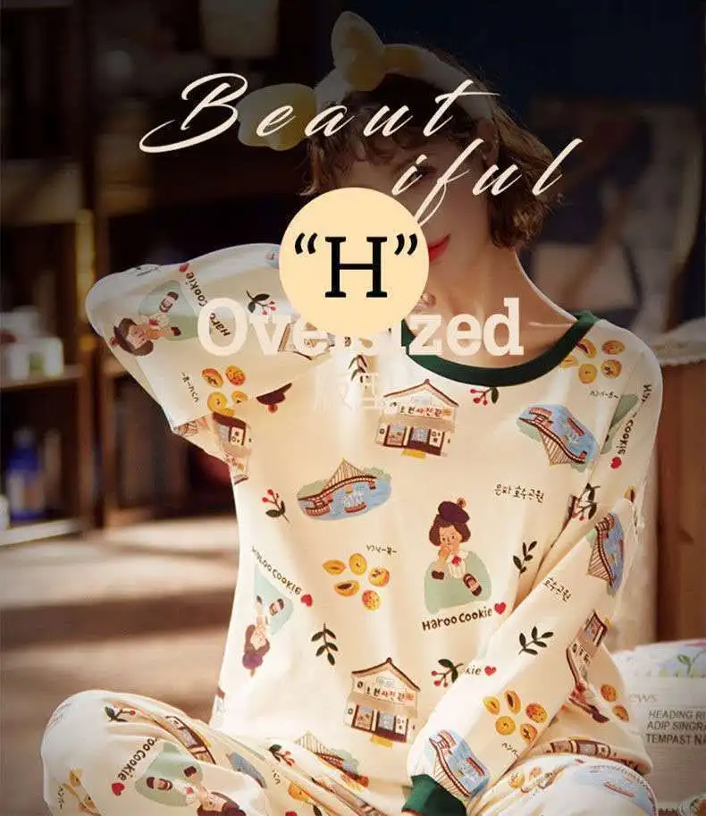 Женская пижама с круглым вырезом, свободная пижама с принтом, милый мультяшный топ для сна, Повседневная Домашняя одежда, весна-осень 2021