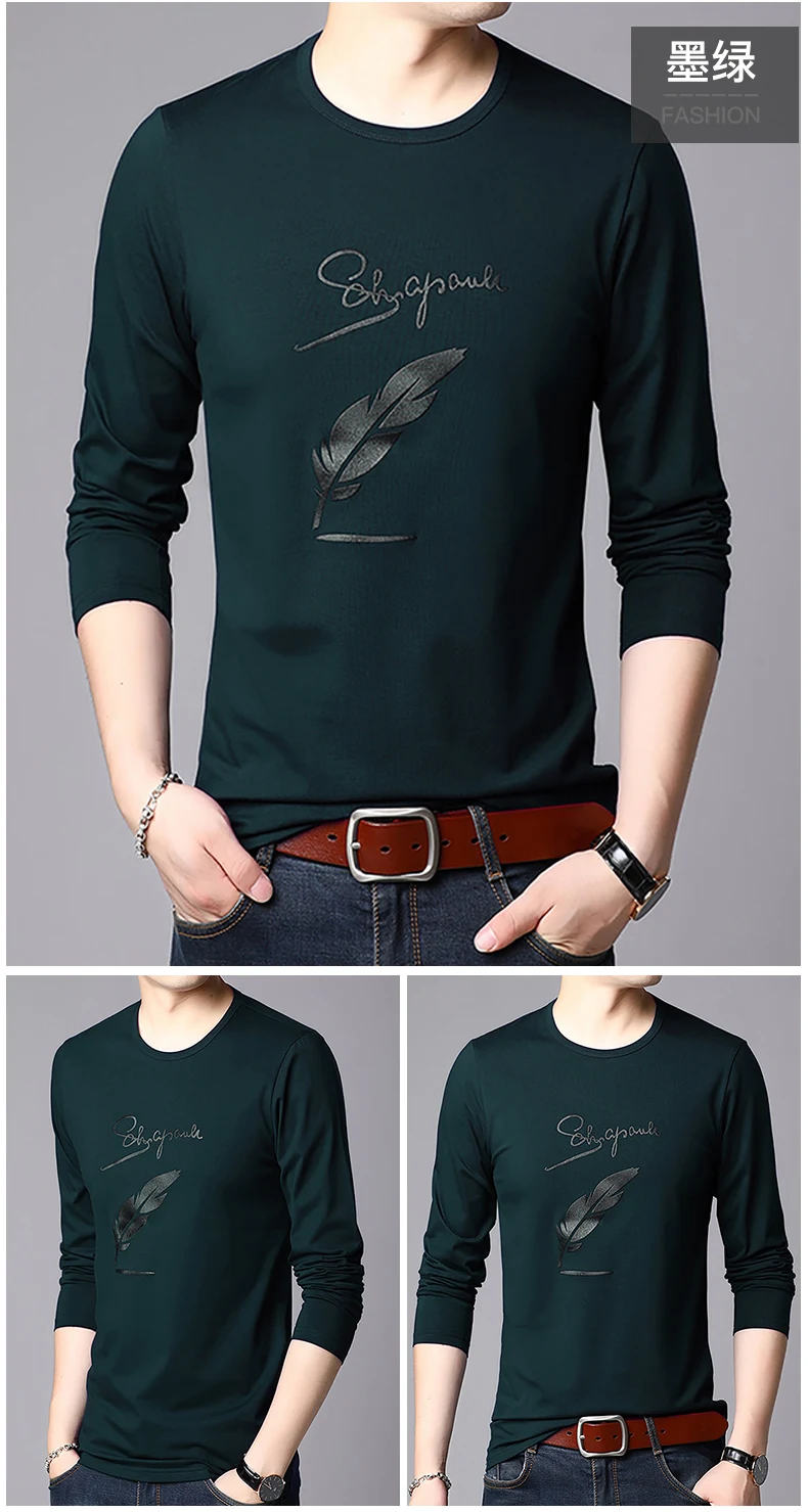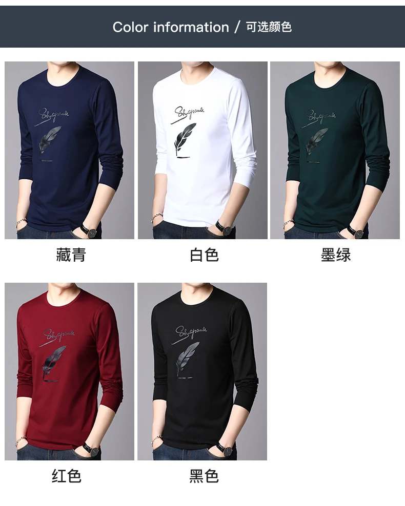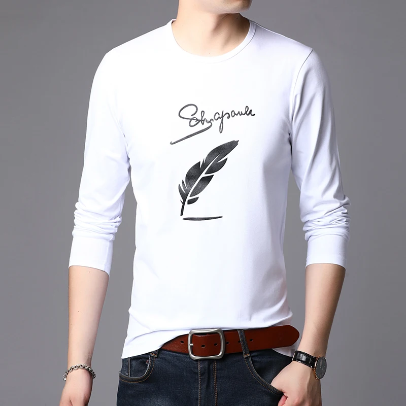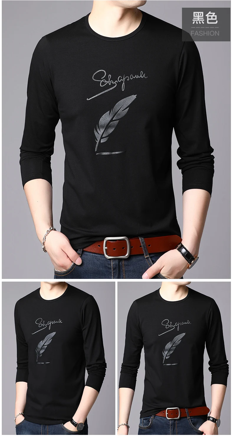 Новая модная брендовая дизайнерская простая футболка с принтом, Мужская футболка с длинным рукавом и круглым вырезом, 95% хлопок, 5% спандекс, топы, повседневная мужская одежда