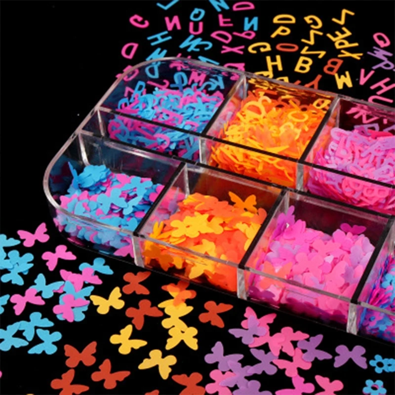 Флуоресцентные блестящие хлопья для дизайна ногтей, 12 сетоккоробка, голографические блестки, для изготовления украшений из эпоксидной смолы