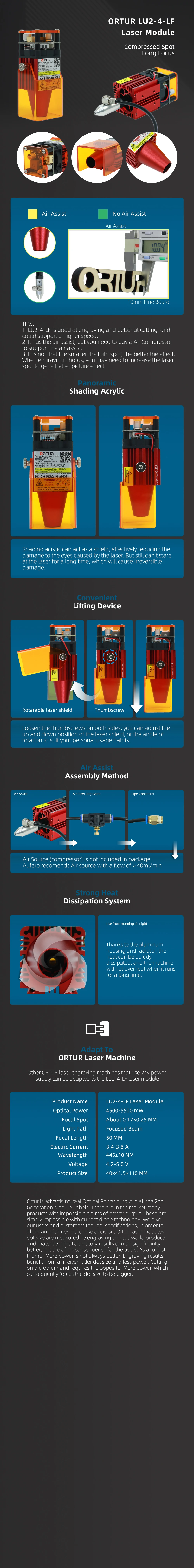 Бренд: OrturНомер модели: LU1-3Тип: лазерный модульМатериал: алюминий + медь + PCBA + стеклянная линза + пластикМощность лазера: электрическая мощность 15 Вт/оптическая мощность 4,0-4,5 ВтДальность достижения лазера: 19 ммМощность: 12 В, выходной ток 1.8A