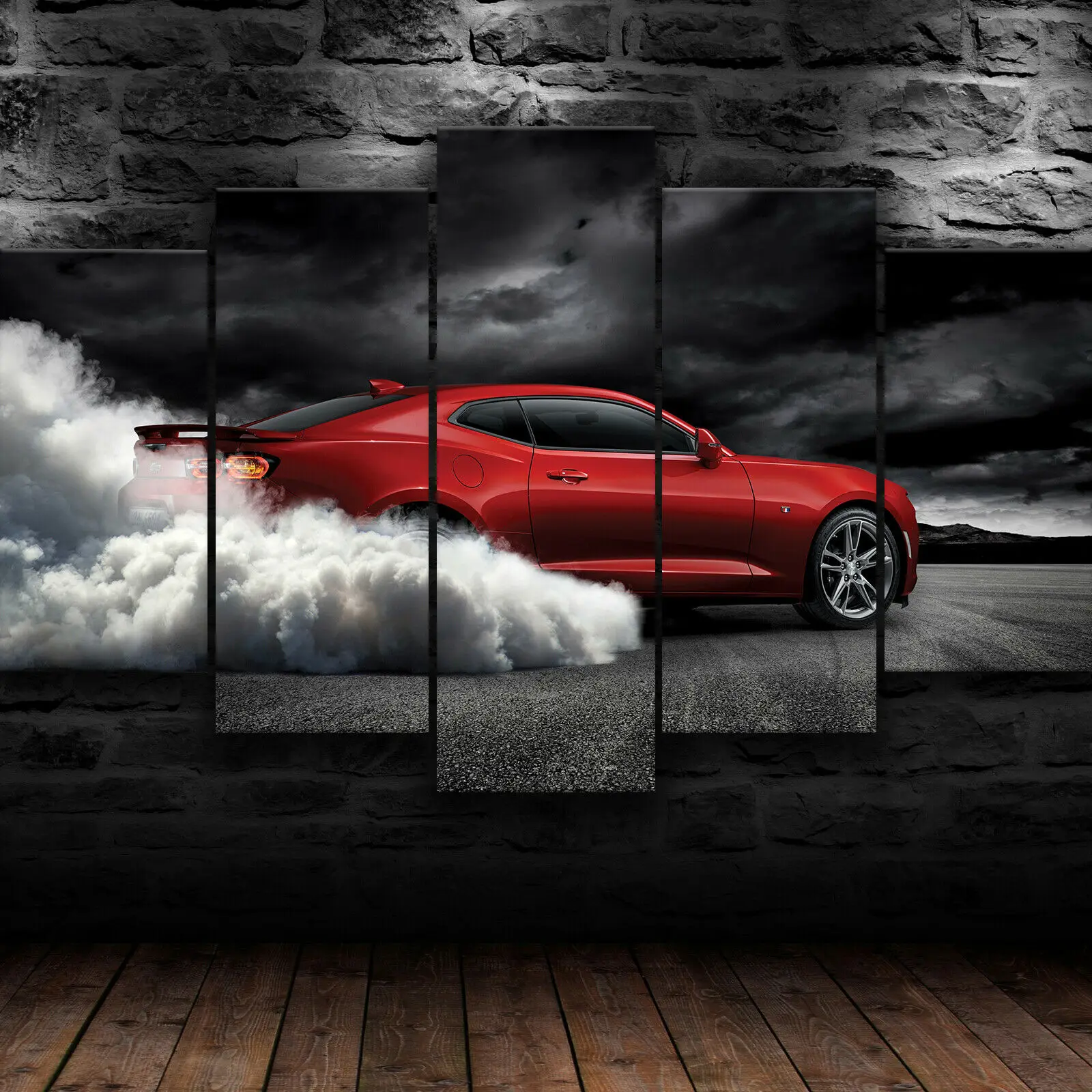 Chevrolet Camaro Smoke Sports Car 5 Pcs Canvas Pictures Print Wall Art