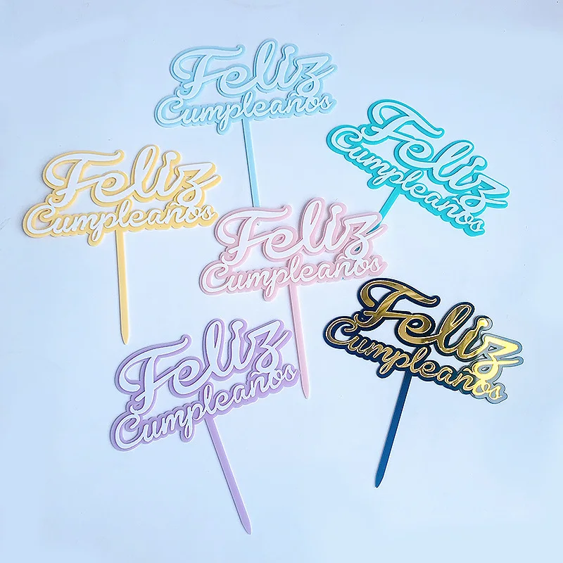 Испанский Feliz Cumpleanos Топпер для торта С Днем Рождения красочные 3D буквы акриловый торт Topper для дня рождения украшения для торта для вечеринки