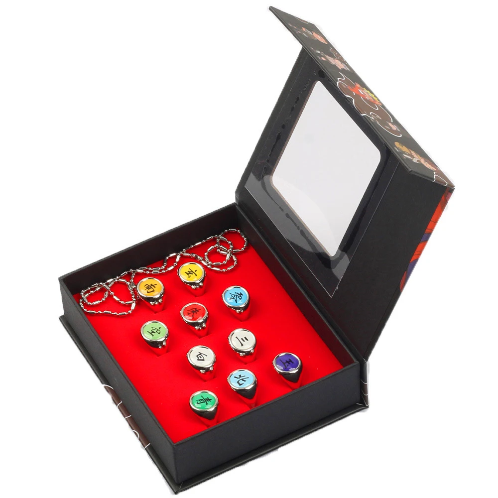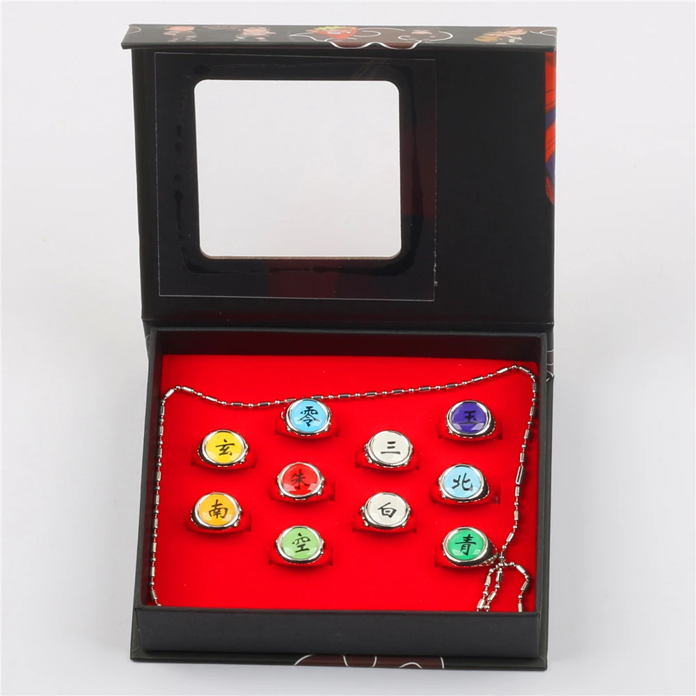 10 шт.компл. аниме Shippuuden ювелирные изделия косплей костюм кольца ниндзя модный стол Akatsuki член металлическое кольцо Набор аксессуаров подарочная коробка
