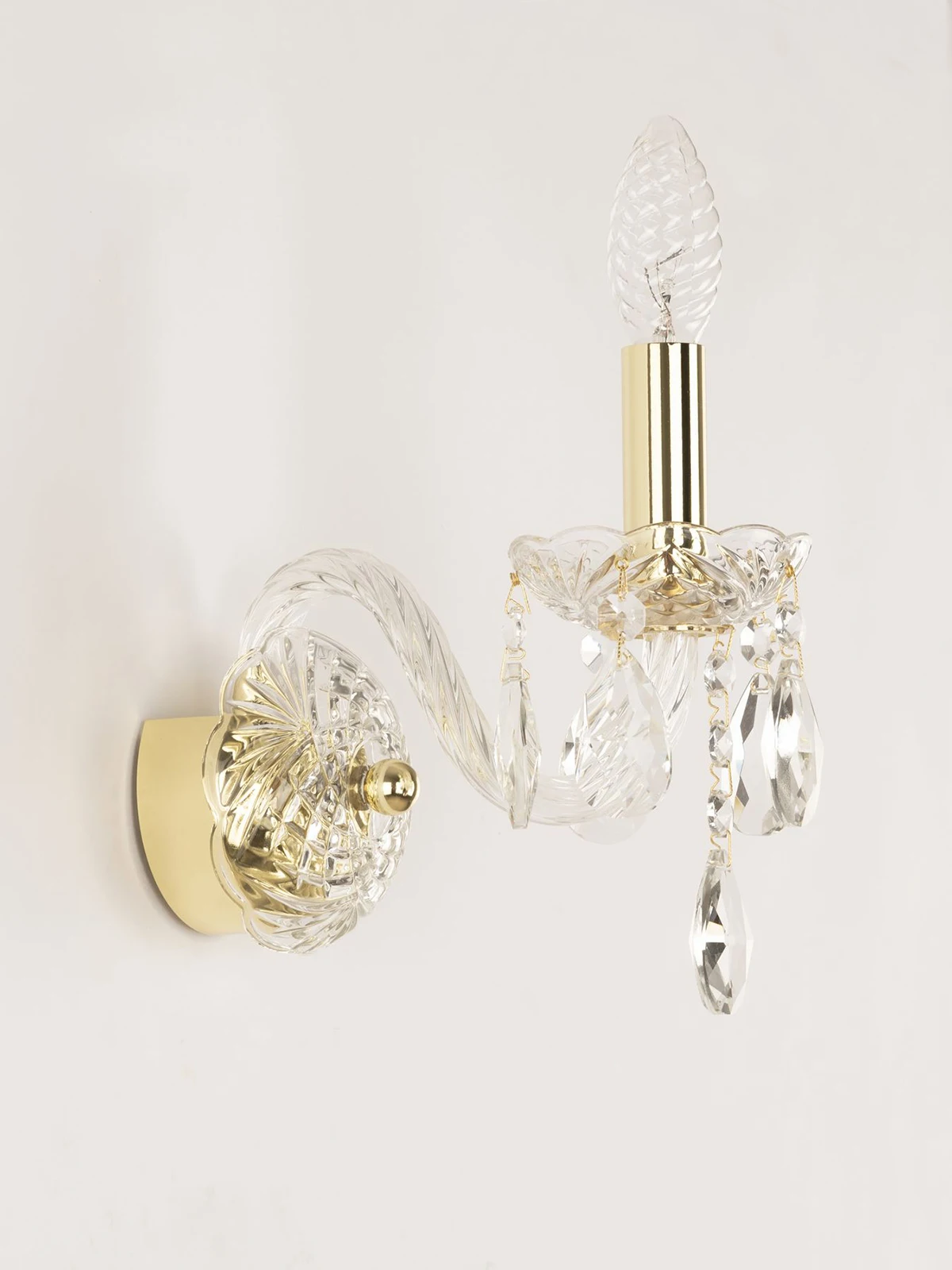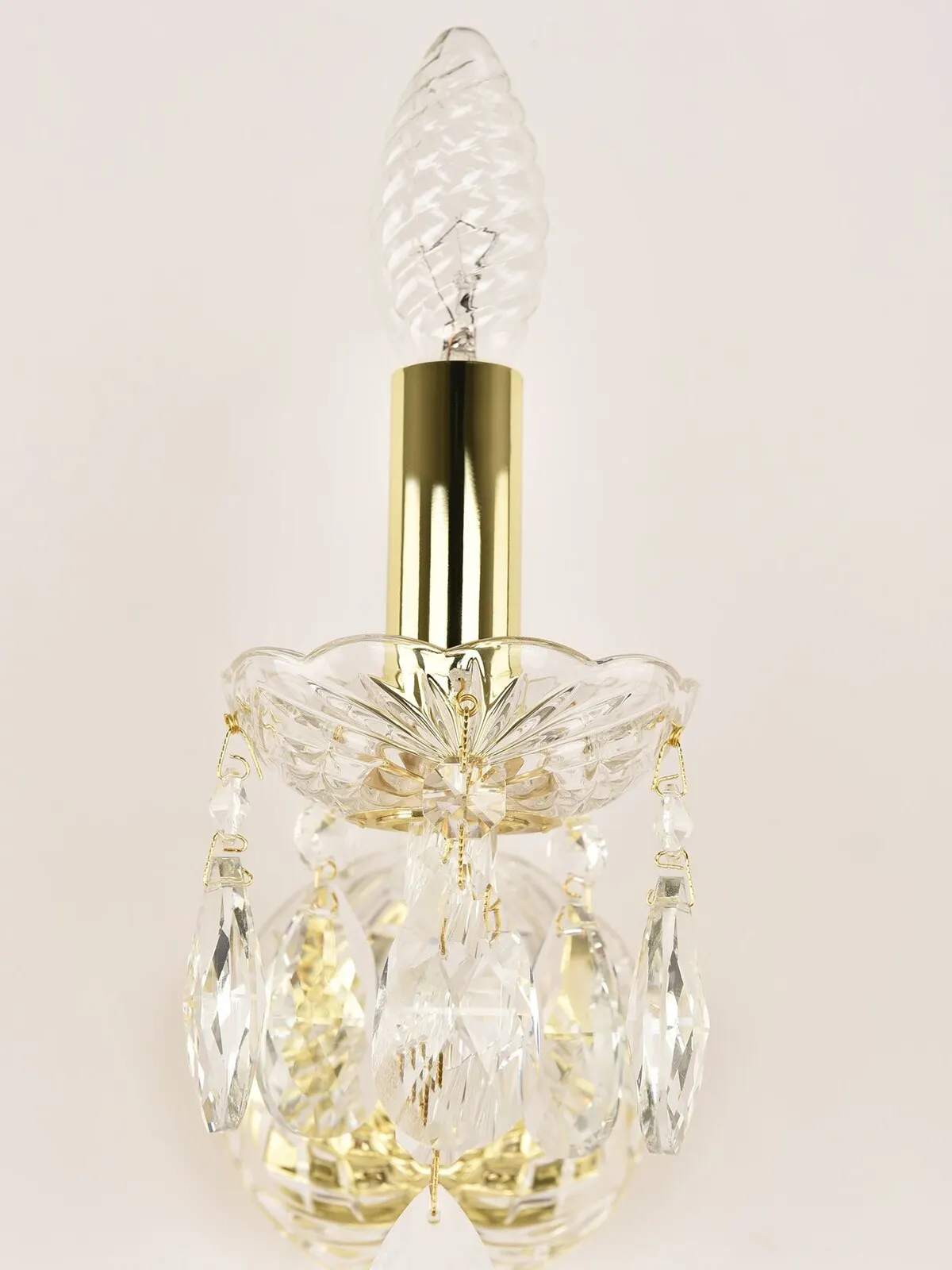 Гарантия 1 год Номер модели A21116 Тип товара Настенные светильники Происхождение Россия Входят ли лампочки в комплект Нет Источник света Лампы накаливания Тип установки Настенный Источник питания Переменный ток Напряжение 220 В Материал корпуса Стекло Вид Классический Тип основания E14 Можно ли затемнять Нет Направление рассеивания up Тип рассеивателя Без абажура Материал Кристалл Количество источников освещения 1 Применение Кабинет Зона освещения 1-3 м² Цвет Золотой Цвет подвесок бесцветный Материал подвесок Хрусталь Тип крепления Планкавнешний вид товара