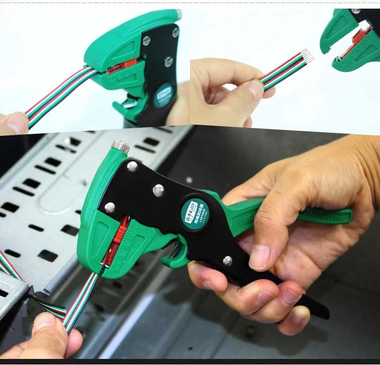 Точная конструкция: Отрегулируйте тяговое усилие в соответствии с размером провода, не повредит провод. Эргономичный дизайн: заряжен пружиной, энергосберегающий, повышает эффективность работы. Хорошее качество: корпус изготовлен из пластика и углеродистой стали. Лезвие изготовлено из материала SK5, который отличается прочностью и прочностью. Витой приводной прибор диапазон: 0,2-5.0mm2. Применение: используется для зачистки плоских кабелей, телефонных линий, общих проводов, многожильных кабелей и так далее.