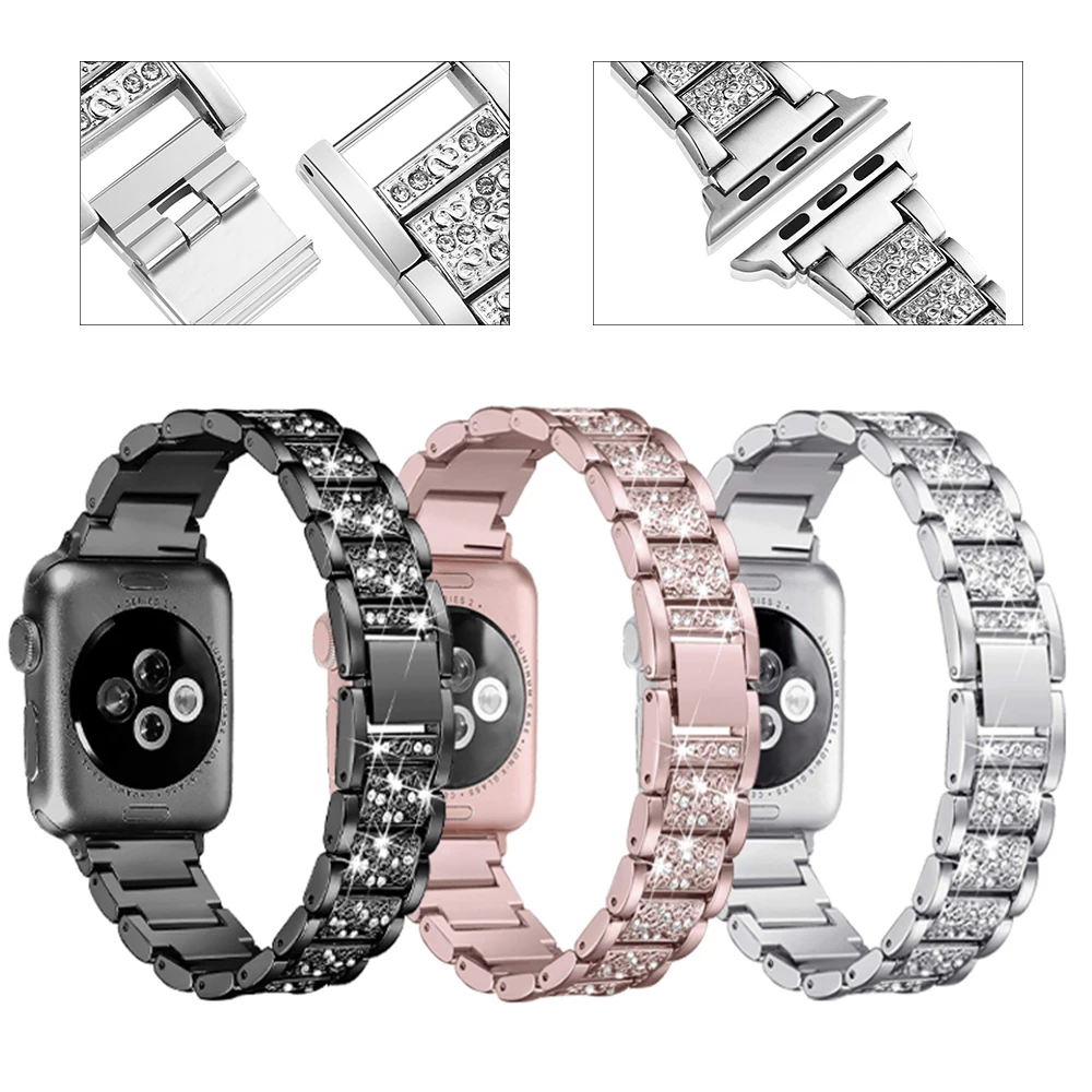 Ремешок для часов Apple Watch, браслет из нержавеющей стали со стразами для iwatch Series 7 SE 6 5 4 3 2 1, 45 мм 44 мм 42 мм, 41 мм 40 мм 38 мм