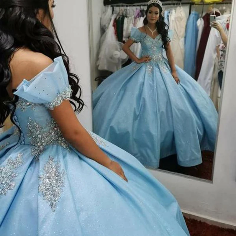 2021 прекрасные голубые платья для малышей, бальное платье принцессы с цветочной вышивкой, кристаллами и бисером, с открытыми плечами, милое платье 16