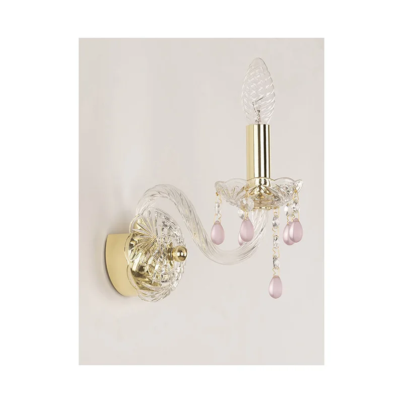 Гарантия 1 год Номер модели A75183 Тип товара Настенные светильники Происхождение Россия Входят ли лампочки в комплект Нет Источник света Лампы накаливания Тип установки Настенный Источник питания Переменный ток Напряжение 220 В Материал корпуса Стекло Вид Классический Тип основания E14 Можно ли затемнять Нет Направление рассеивания up Тип рассеивателя Без абажура Материал Кристалл Количество источников освещения 1 Применение Кабинет Зона освещения 1-3 м² Цвет Золотой Цвет подвесок розовый Материал подвесок Хрусталь Тип крепления Планкавнешний вид товара