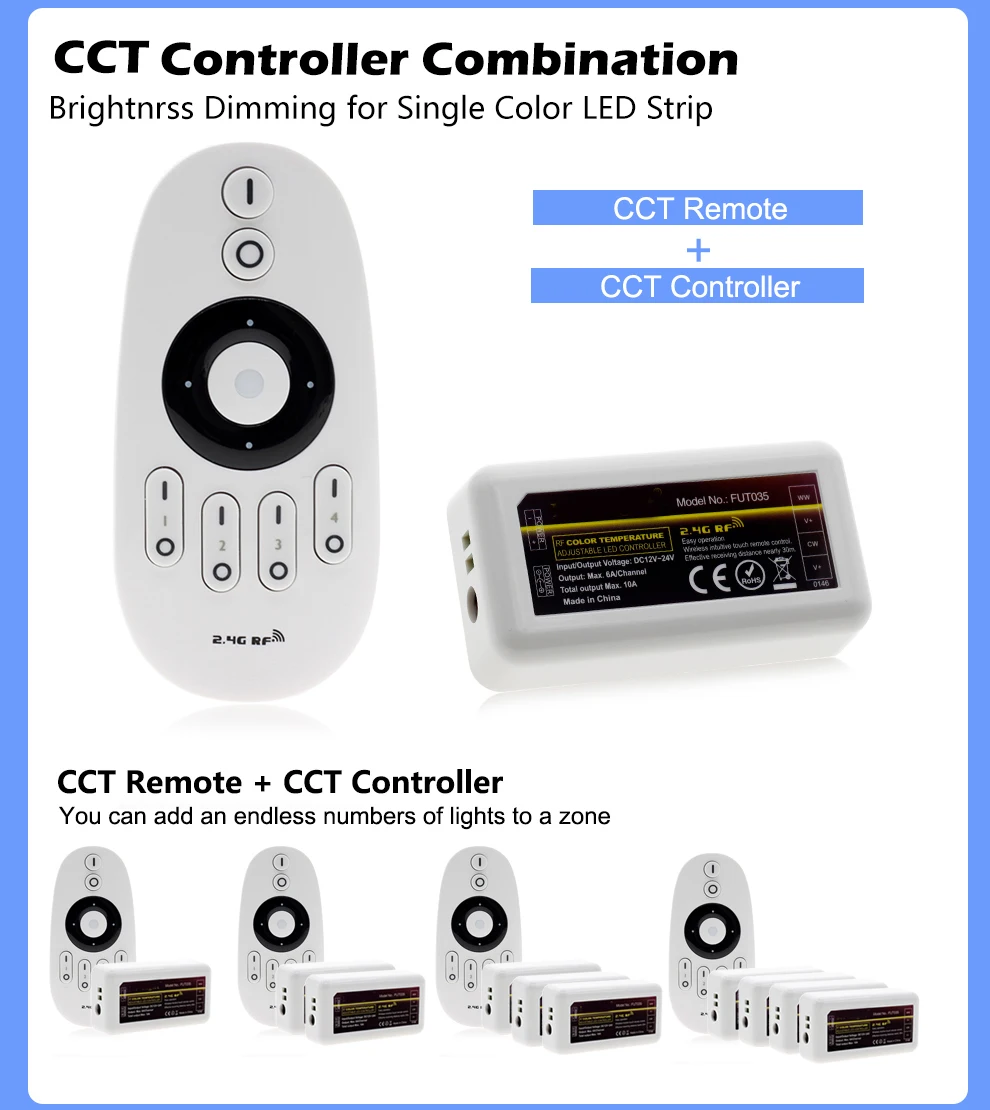 CCT(FUT035): Регулировка яркости и цветовой температуры для двойной белой светодиодной ленты-2 цвета