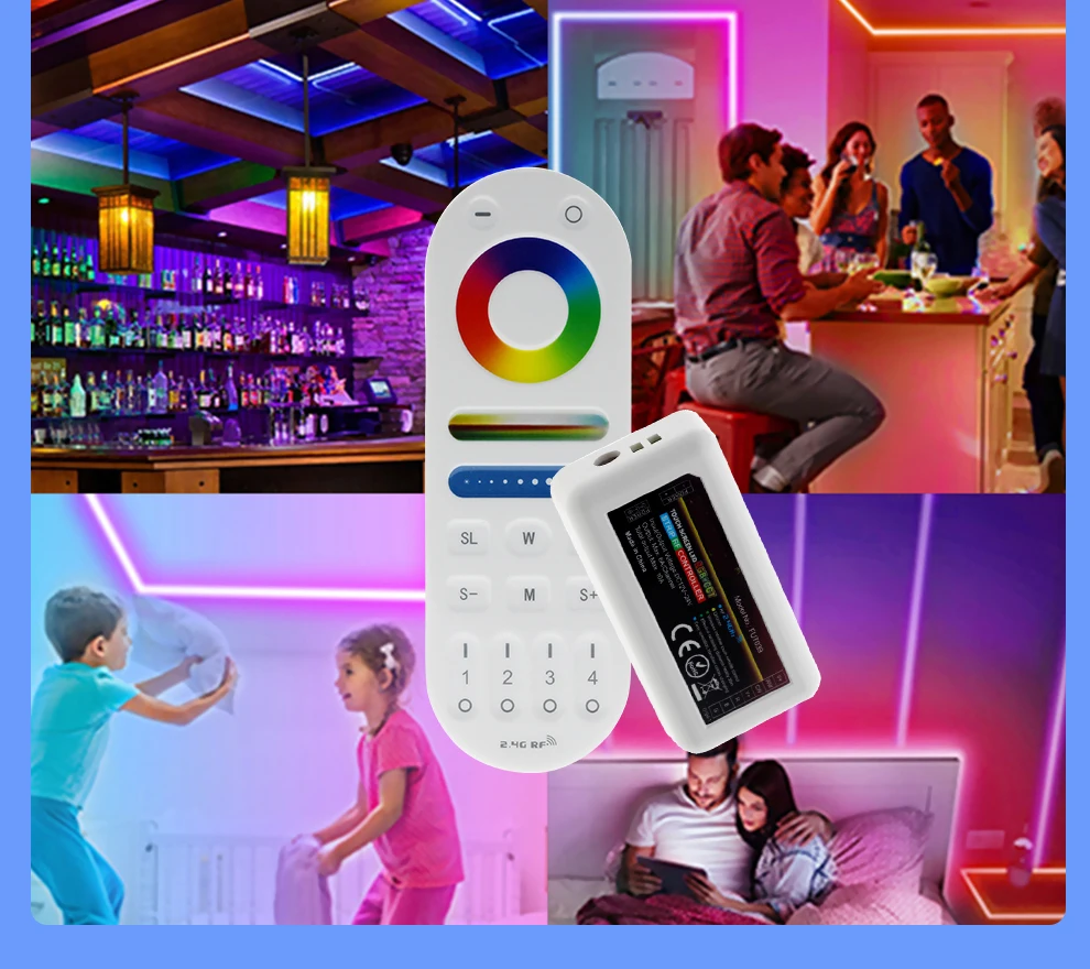 Умная Светодиодная лента с регулятором яркости DC12-24V 2,4G, беспроводной Радиочастотный пульт для одного цвета, CCT RGB RGBW RGB + CCT, светодиодная Светильник та