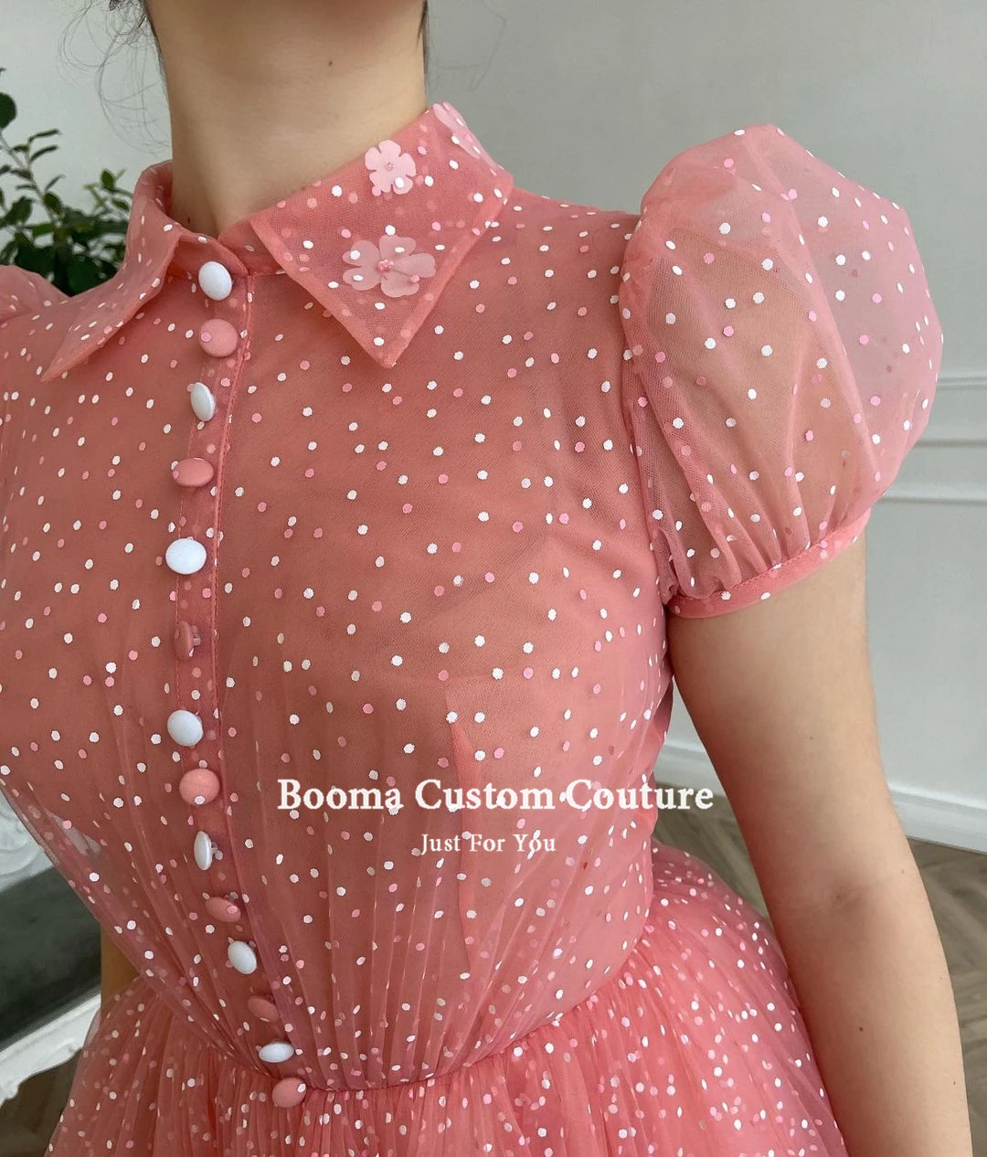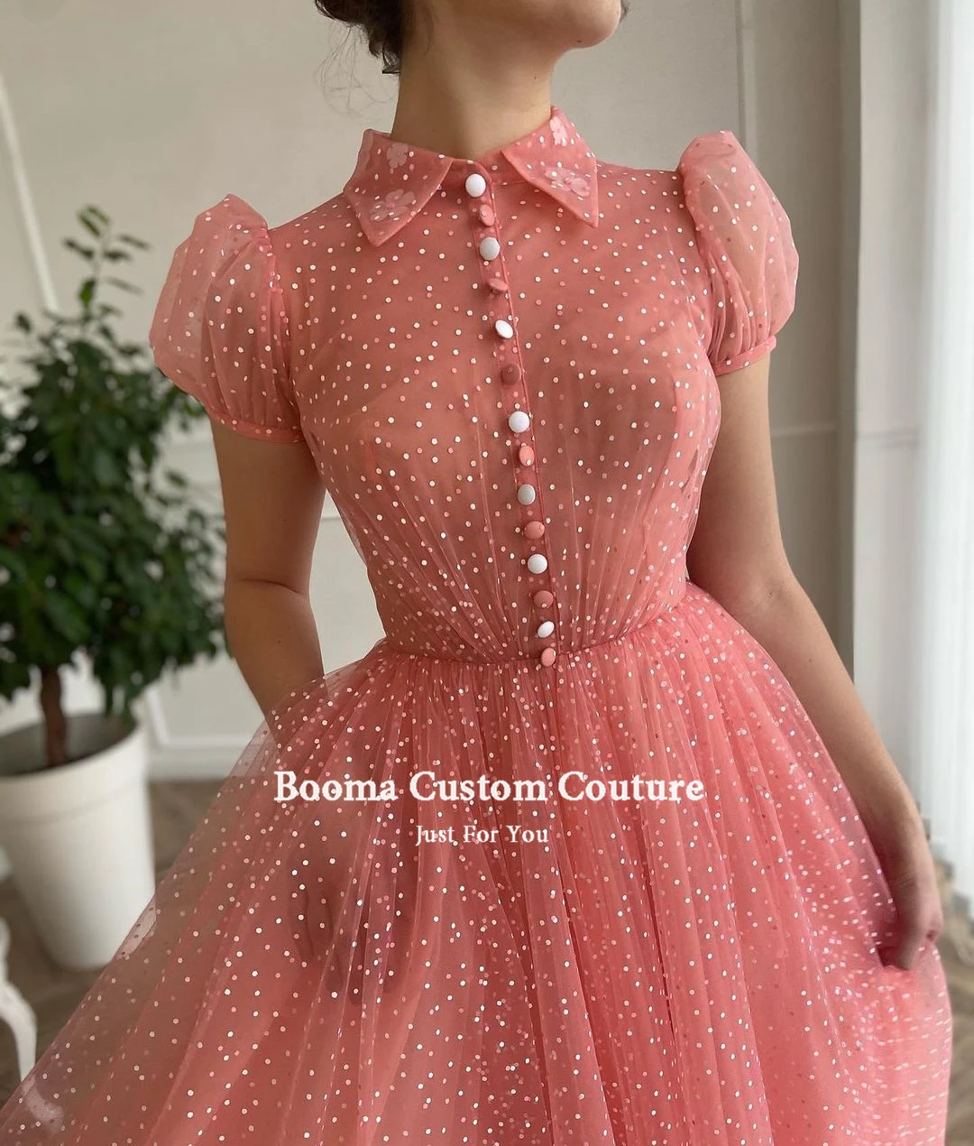 Женское винтажное фатиновое платье Booma, розовое платье средней длины в горошек с короткими рукавами и карманами, свадебное платье длиной до колена