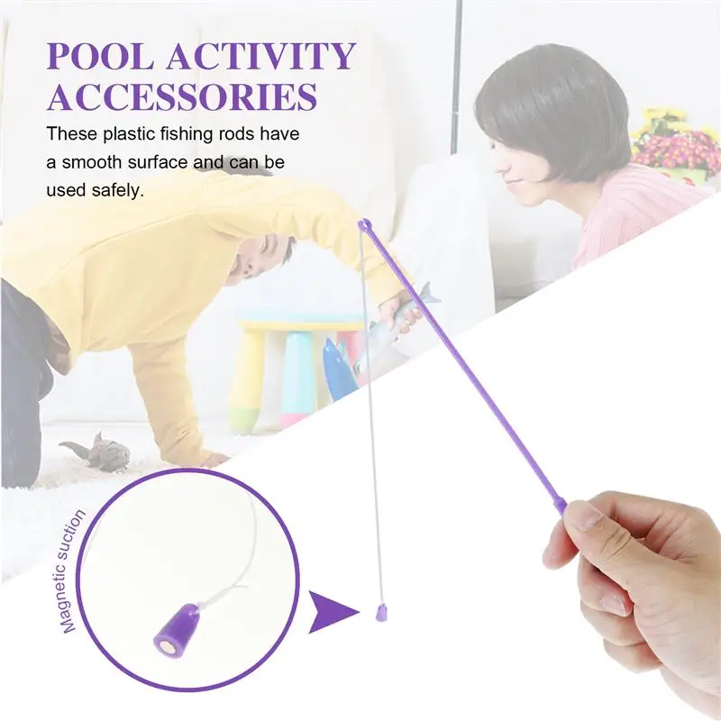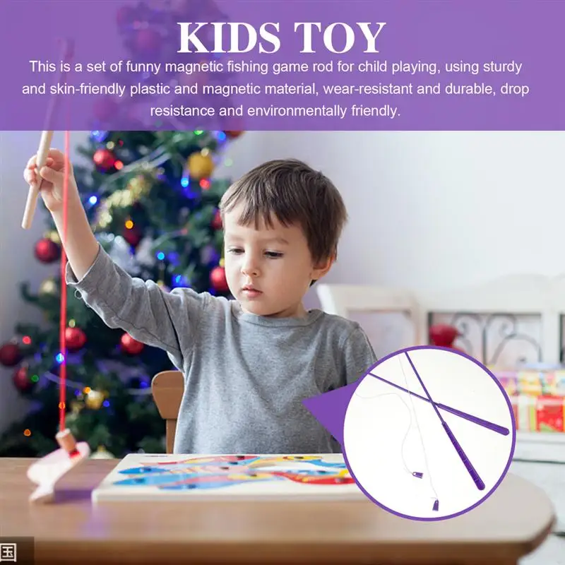 Это набор забавных магнитных рыболовных удочек для детских игр, с использованием прочного и безопасного для кожи и магнитного материала, износостойкого и прочного, стойкого к падению и экологически безопасного. Красивый и яркий внешний вид, хороший материал, ребенок не может положить его вниз.