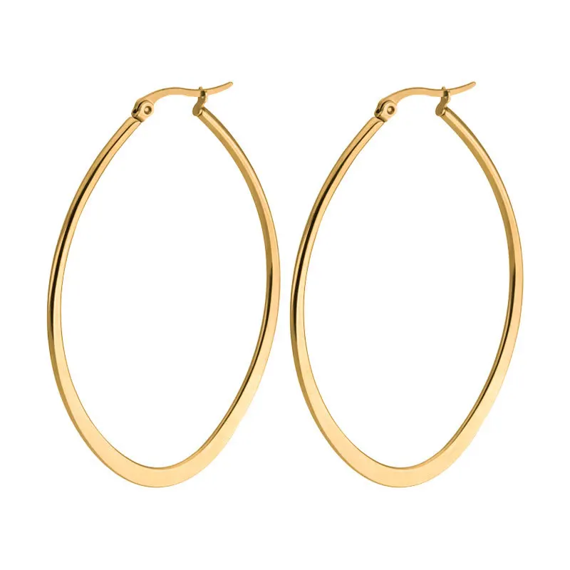 Серьги-кольца из нержавеющей стали, трендовые, Овальные, Приплюснут...