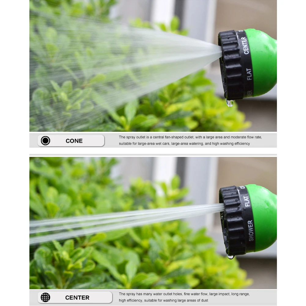 3. Поверните головку водяного пистолета для регулировки 7 видов распыления воды: струя, душ, плоский, Конусный, полный, туман, центр.