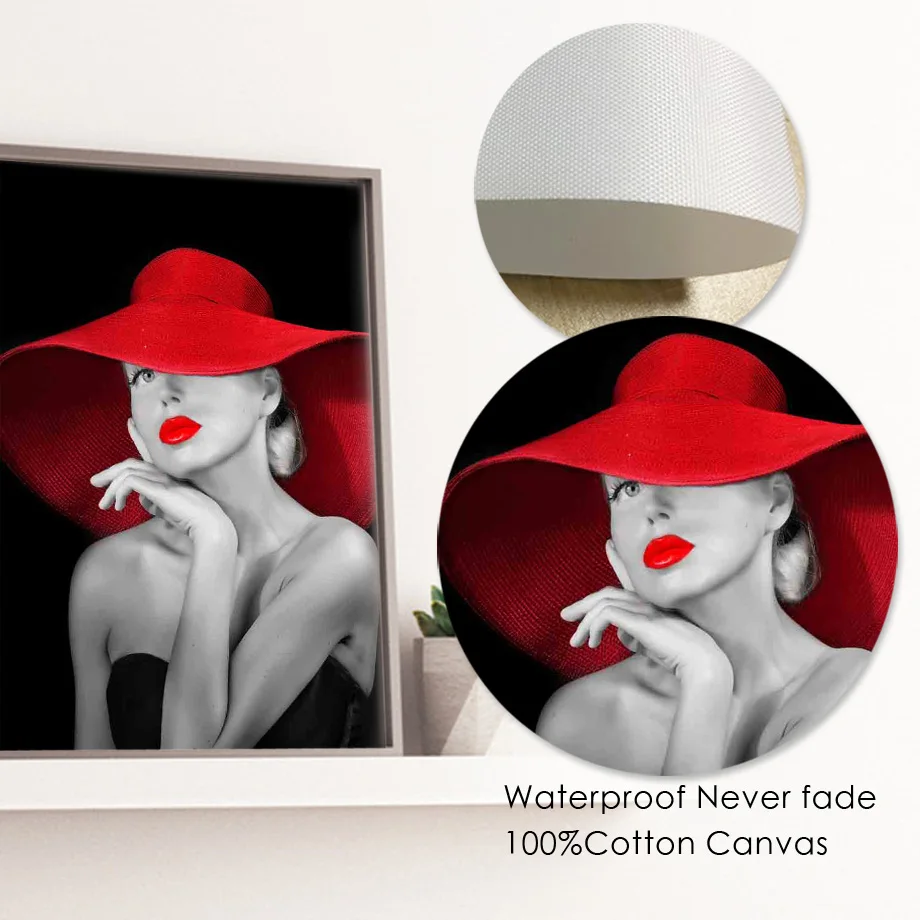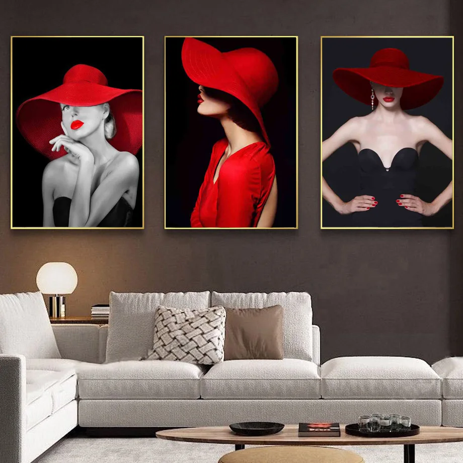 Модная женская шляпа серьги сексуальные красные губы настенная Картина на холсте скандинавские постеры и принты настенные картины для декора гостиной