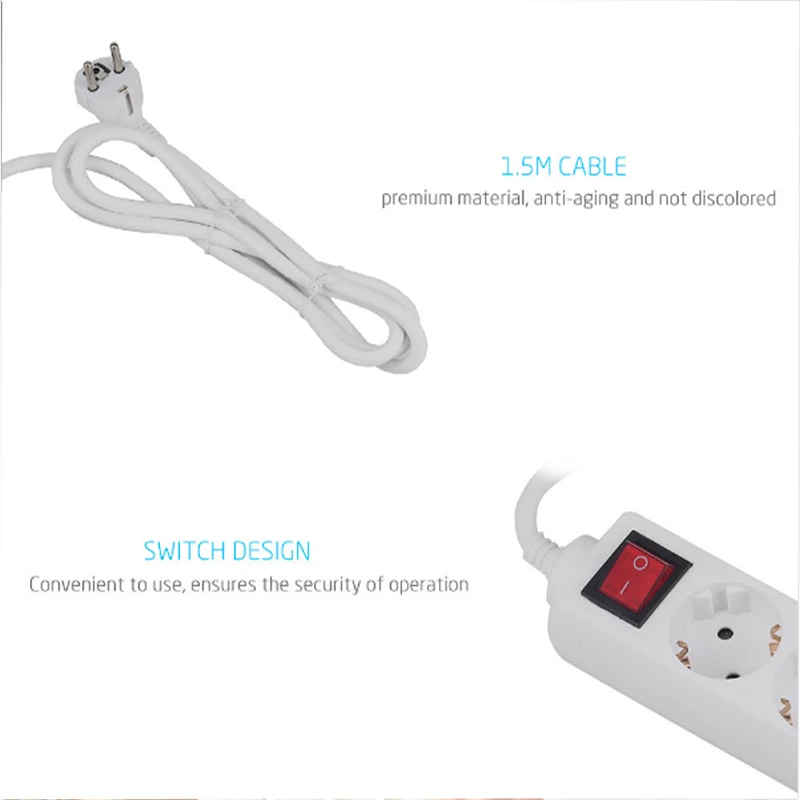 Наименование товара: Европейская стандартная розетка Номинальный ток: 10А Номинальное напряжение: 80-220 В Материал корпуса: ПК Материал проводника: медь Длина проводки: 1,2 м Сфера применения: домашний офис Вес нетто: 190 г Технические характеристики: разъемы 4USB3 (с круглым отверстием), разъемы 2USB3 (с круглым отверстием), 4 разъема (с круглым отверстием)