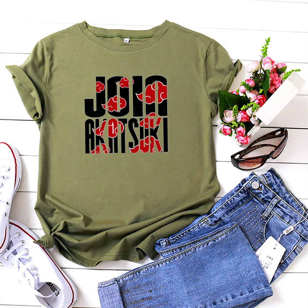 Присоединяйтесь к Akatsuki новая футболка, женская, их хлопка прилив графика Футболка Модные женские ботинки черного цвета в винтажном стиле; В стиле Харадзюку для женщин Футболка уличная футболка для женщин