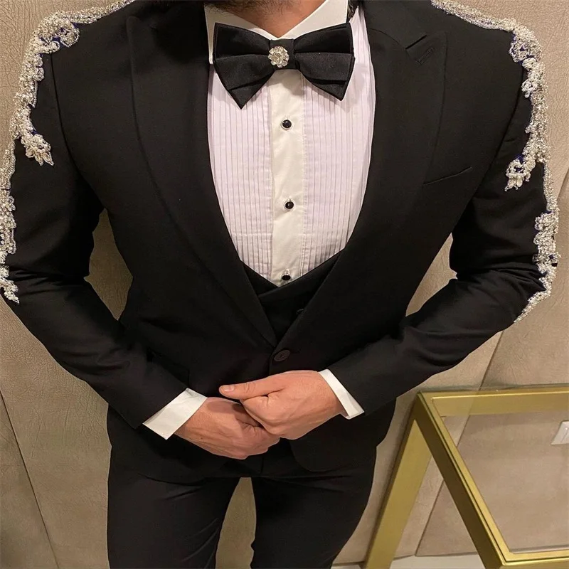 Мужские костюмы из 3 предметов, свадебные костюмы черного цвета с а...