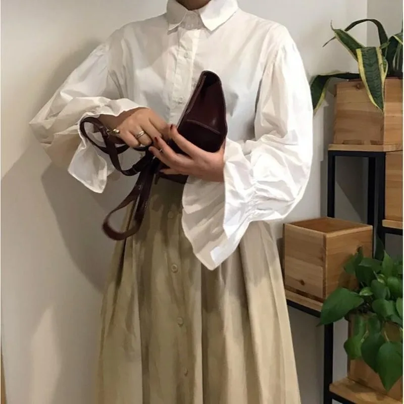 Рубашки женские шикарные свободные универсальные с пышными рукавами плюс бархатная рубашка женские модные однотонные Топы в стиле Ins Ulzzang повседневные женские модные повседневные
