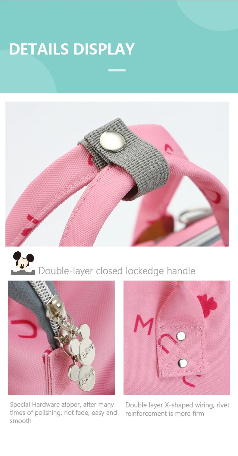 Многофункциональная сумка для мамыТкань: ОксфордАппаратная подвеска: диснеевский сплав на заказРазмер изделия: 41*26*21 смЦвет: синий, розовый Особенности продукта:1 большое отверстие, 13 карманов2. Изысканная металлическая застежка-молния гладкая, кожаная Тяговая головка3. Изысканная Автомобильная линия, армирование заклепками, прочная и износостойкая4. Двойное d-образное подвесное кольцо на спине можно повесить на тележку для удобного путешествия5. Брелок против потери, избегайте поиска, когда вы идете домой Примечание: Изделие измеряется вручную, возможна погрешность в 1-2 см, пожалуйста, поймите!