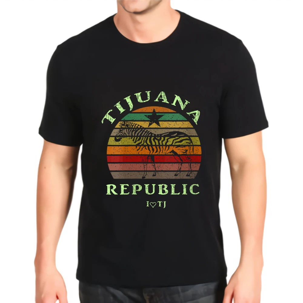 Новая модная футболка с принтом, Тихуана, Республика, tj baja, Мексика, ретро, закат, zeb, топ, мужские свободные футболки на заказ