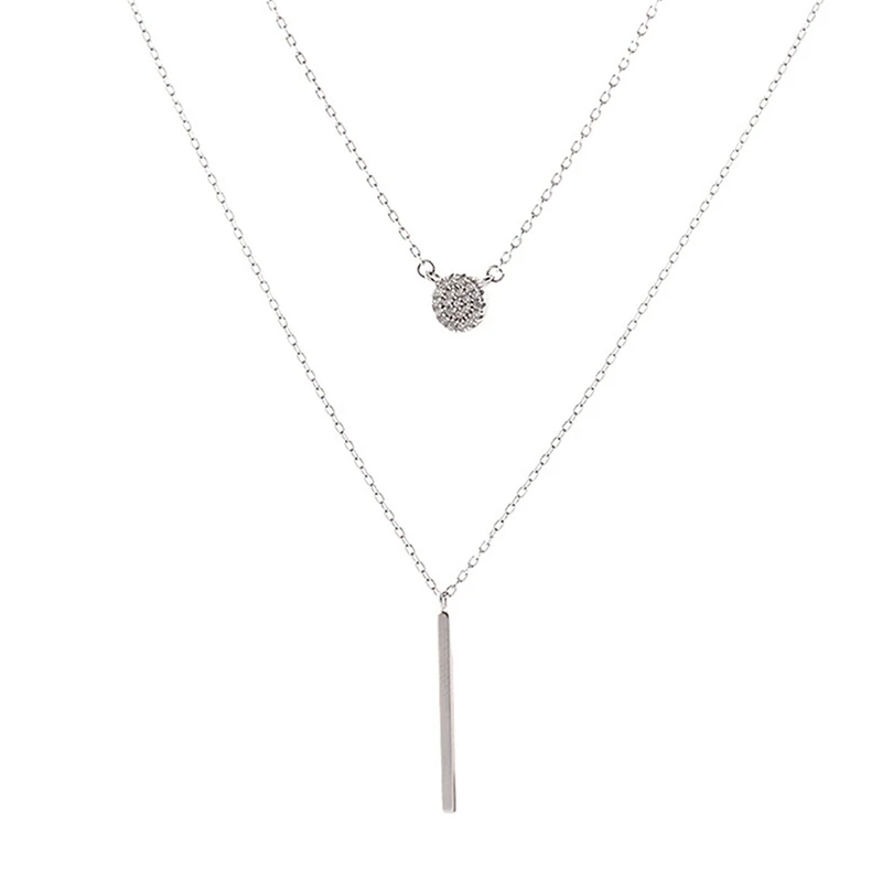 Двухслойное ожерелье из розового золота и серебра, длинное круглое сверкающее ожерелье с длинной подвеской из циркония, хороший подарок для девушки, аксессуары