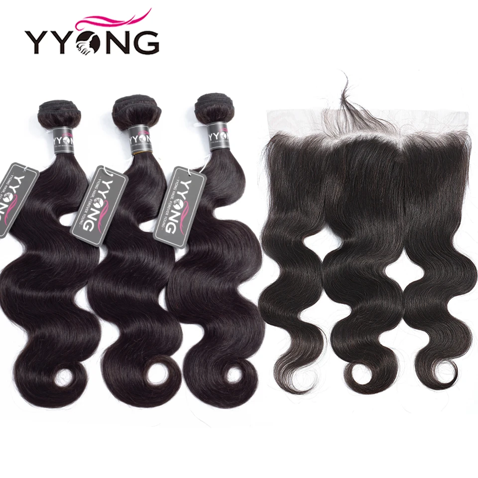 YYong HD Прозрачная Кружевная передняя часть с пряди, Remy перуанская волна тела 24 дюйма 13x4 кружевная Фронтальная застежка пряди человеческих волос