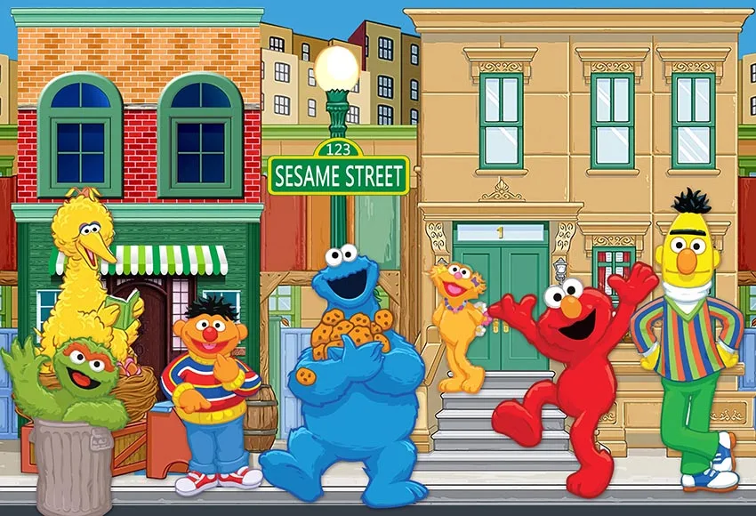 Виниловый фон для детской фотосъемки с изображением здания Улица Сезам