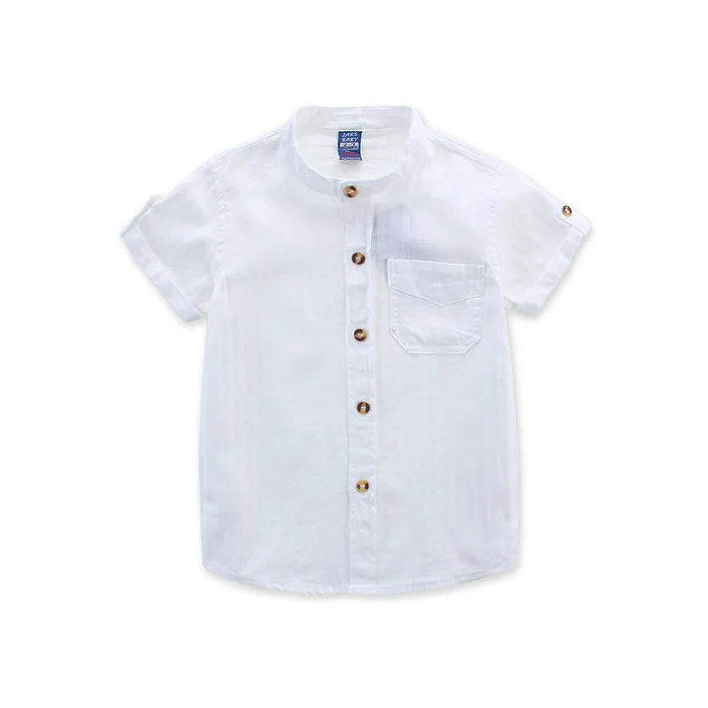 Рубашки для маленьких мальчиков, хлопковая льняная одежда для детей 2-12 лет, летняя белая детская одежда с коротким рукавом, топы, рубашки, дышащие Блузы