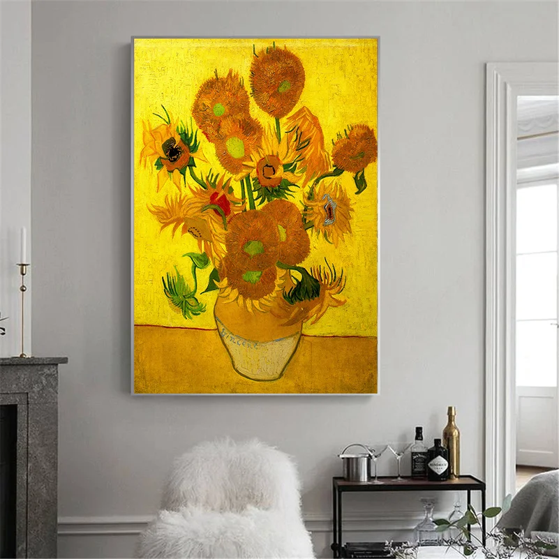 Картина Ван Гога с подсолнухами, абстрактный постер на холсте с изображением цветов, настенные картины для гостиной, кухни, спальни