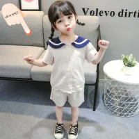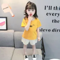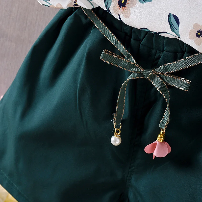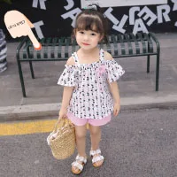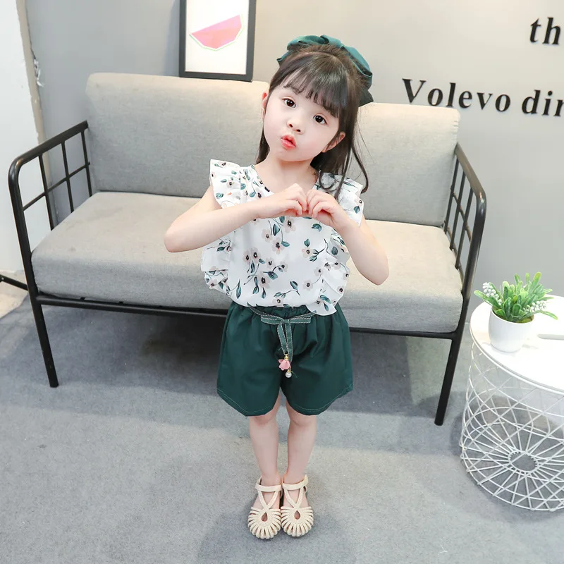 От 1 до 4 лет, одежда для девочек, летнее платье для отдыха, спортивный комплект из двух предметов, рубашка с цветочным узором + брюки средней длины высокого качества; Одежда для детей
