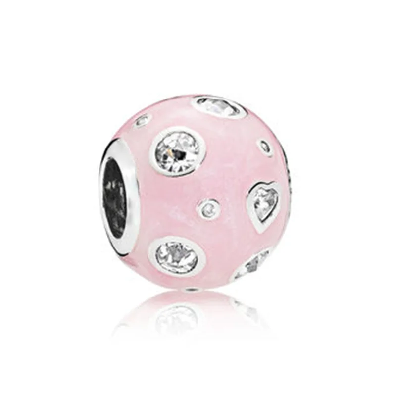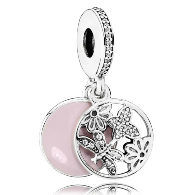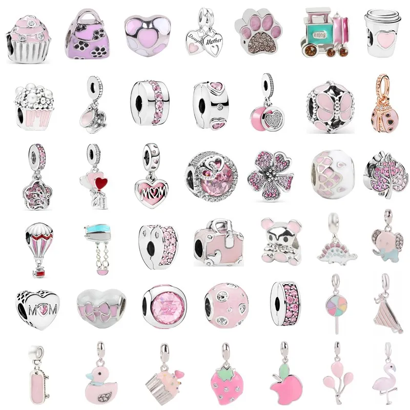 Новинка 2021, бусины розового цвета серии с цветами, листьями, кофейной чашкой, поездом, бабочками, подходят для оригинальных браслетов Pandora с подвесками, женский подарок сделай сам