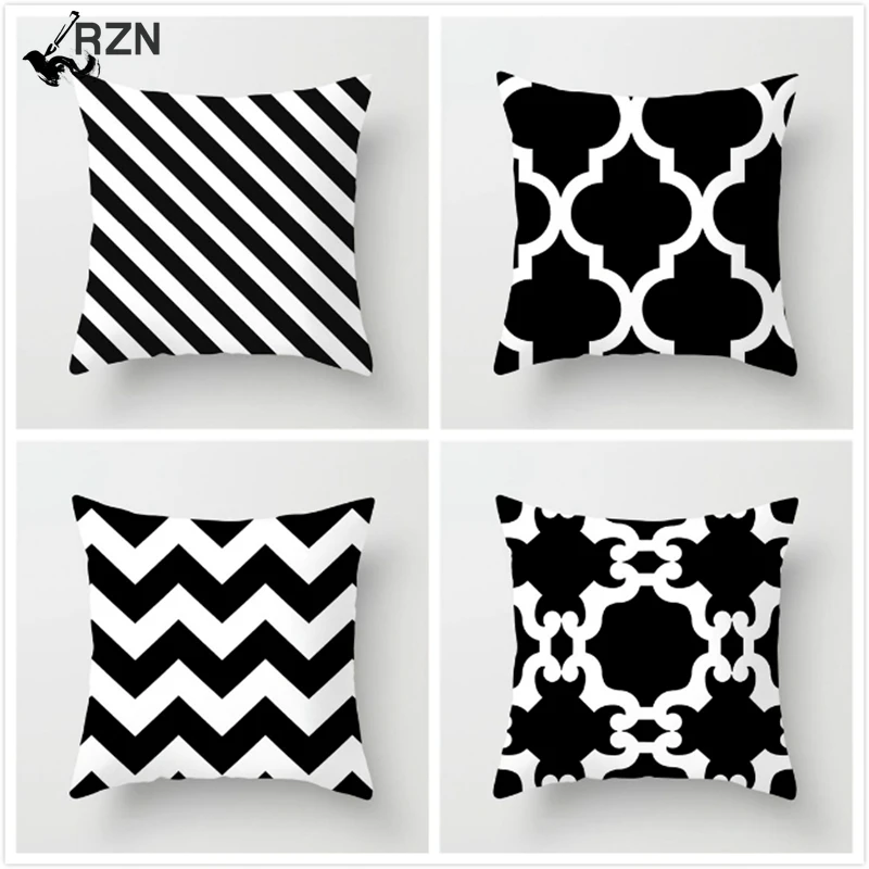Наволочка для подушки с принтом в виде сетки, черно-белая наволочка для подушки в геометрическом стиле, декоративные наволочки для дивана, автомобиля