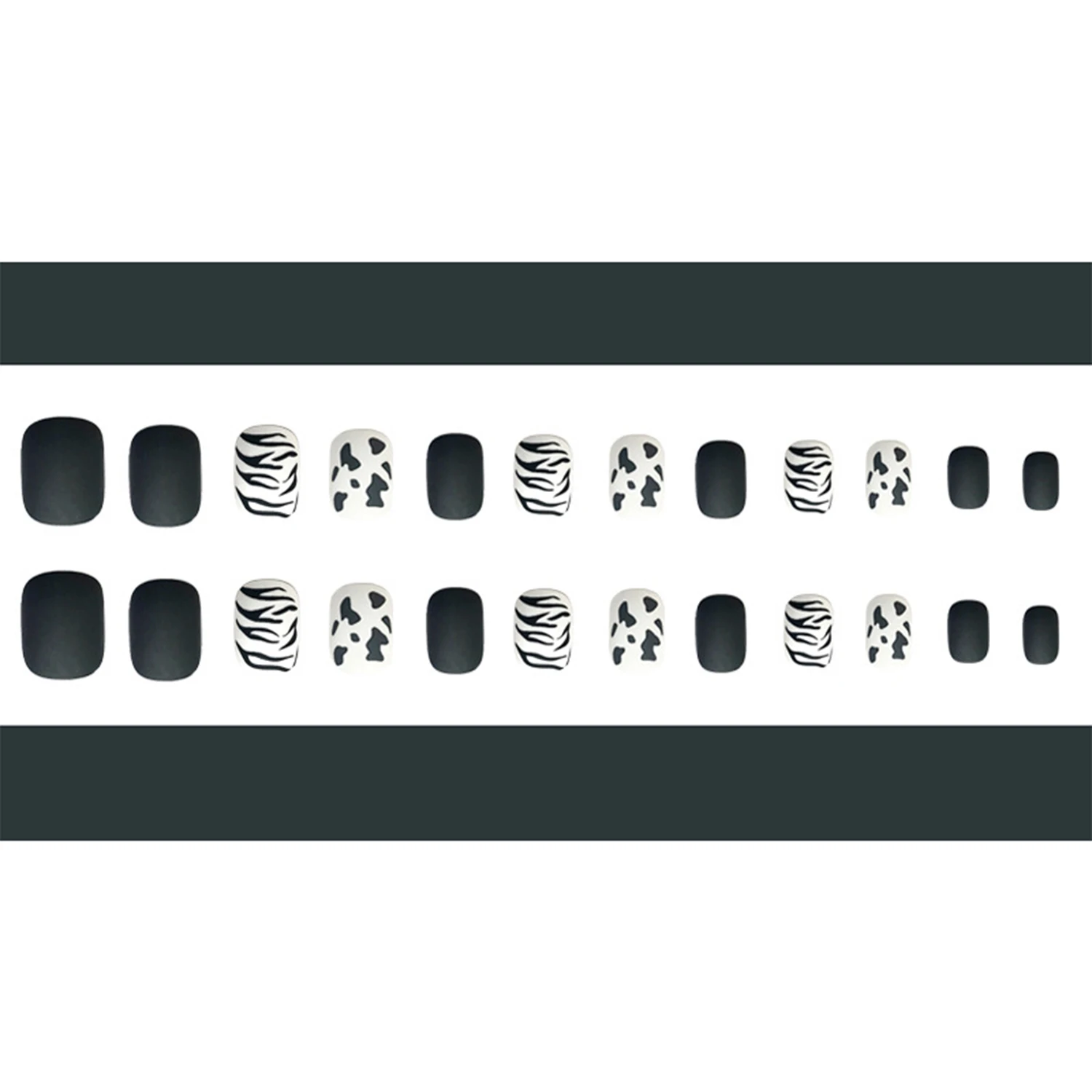 Съемные накладные ногти, черный, белый, молочный, коровья кожа, пол...