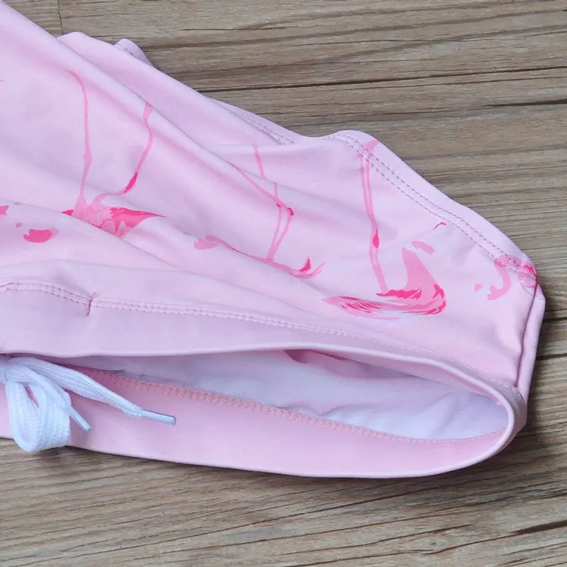 Пикантные мужские трусы для плавания, бикини на шнуровке, спортивный купальный костюм, Пляжное нижнее белье, спортивная одежда для плавания, штаны для водных видов спорта с принтом фламинго